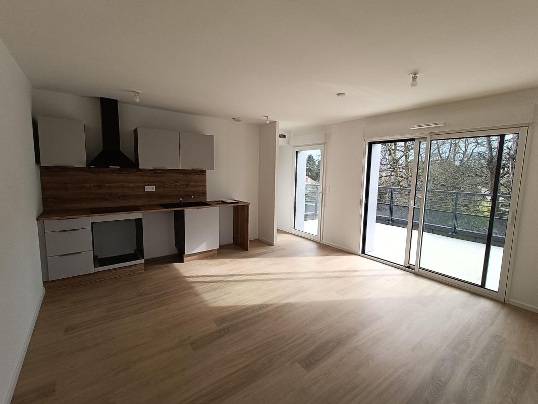 A louer, dans une résidence récente de 2025, appartement T2 composé d'une pièce de vie principale de 23m² avec cuisine ouverte aménagée et équipée d'une plaque de cuisson et d'une hotte, une terrasse de 10m², une chambre avec placard et une sall...