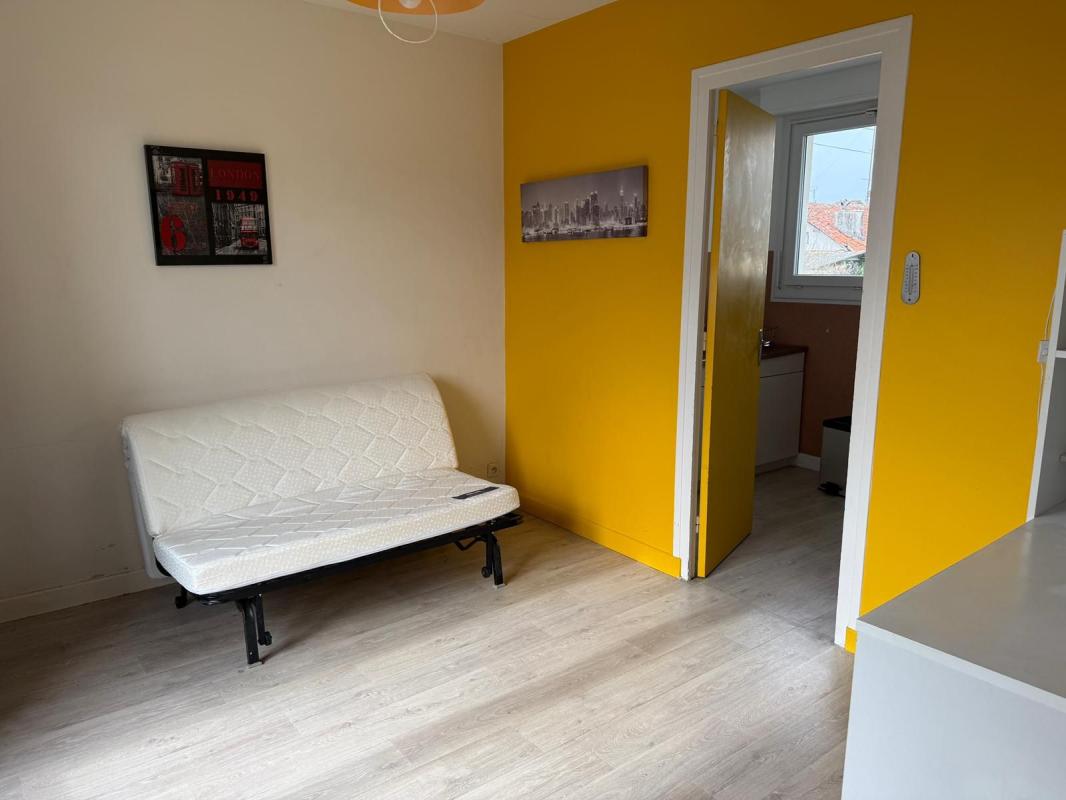 A louer, proche du centre-ville, au premier étage sans ascenseur, studio composé d'une pièce de vie principale avec cuisine ouverte et rangement, et une salle d'eau avec WC.
