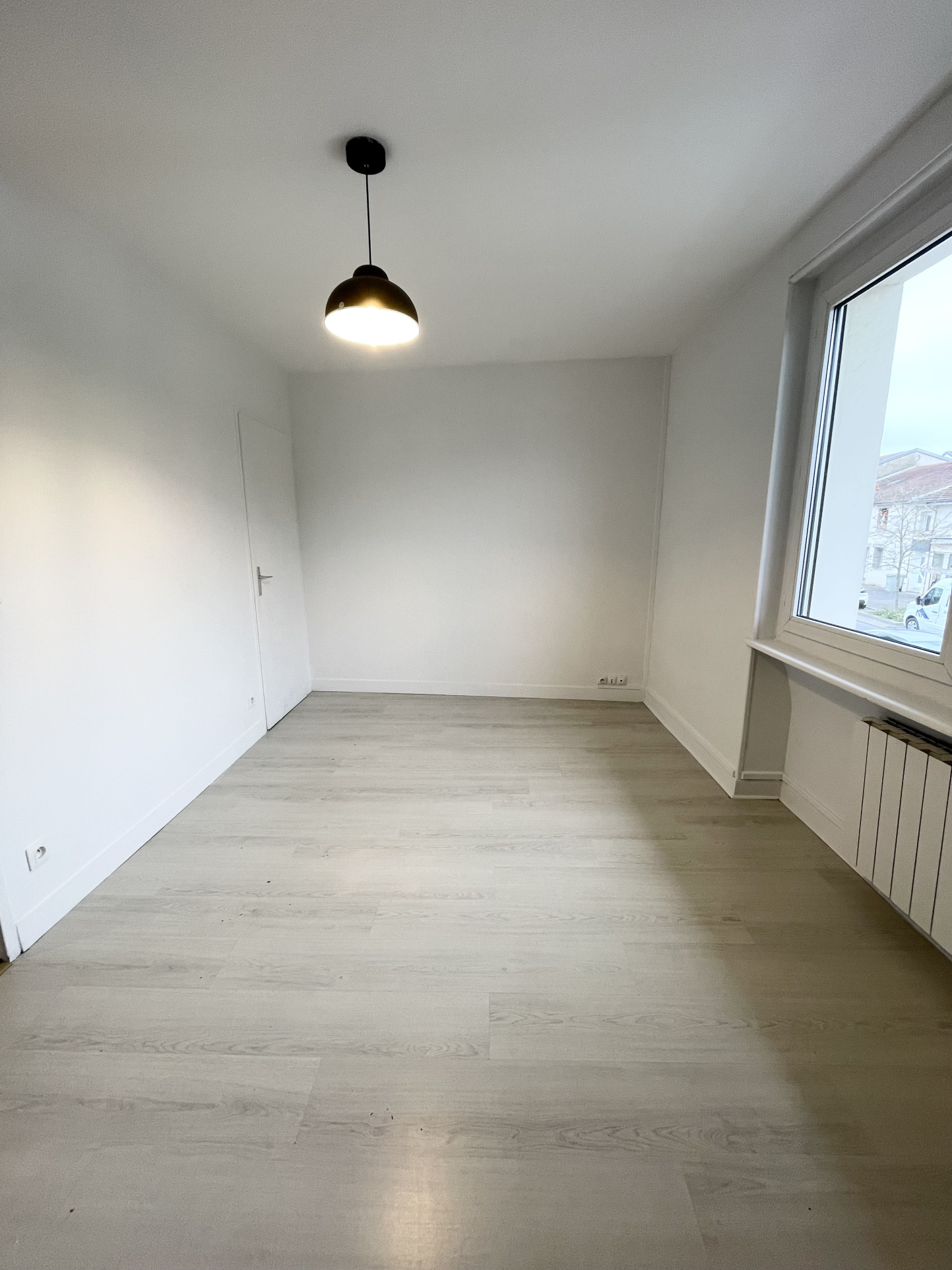 Situé Avenue du Général Patton, appartement F2 au 1er étage composé d'une pièce de vie ouverte sur cuisine équipée, une chambre avec rangements, une salle de bains et un WC.