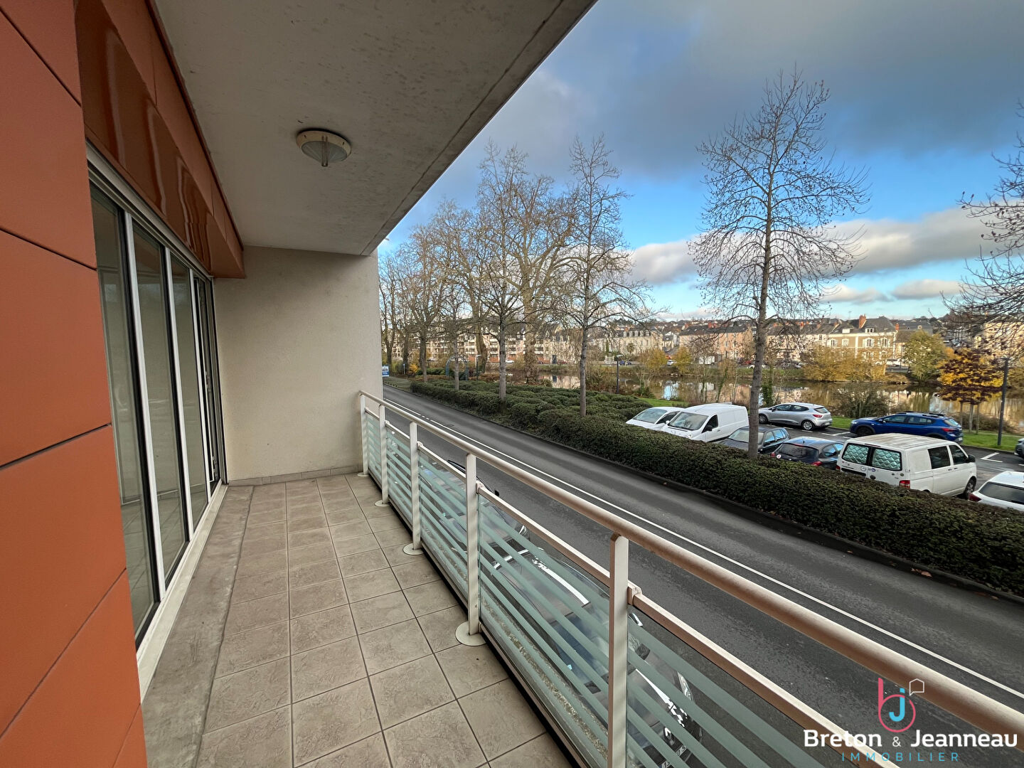 A Laval : un appartement T3 comprenant une entrée avec placard, un séjour ouvert sur coin cuisine aménagée et équipée (four, hotte, plaque), deux chambres dont une avec placard, une salle de bain, WC et un balcon...