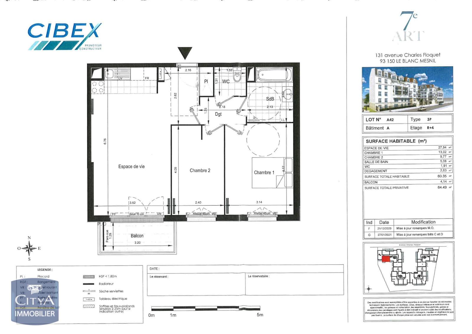 À LOUER : Appartement récent T3 situé au Blanc-Mesnil, dans un quartier agréable et dynamique. Ce bien dispose d'une superficie de 60 m², offrant un espace de vie confortable et fonctionnel. Le salon, d'une superficie de 27,94 m², est lumineux et acc...