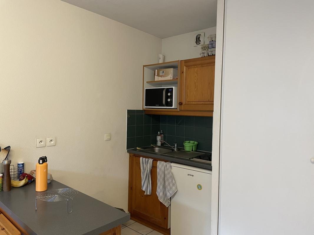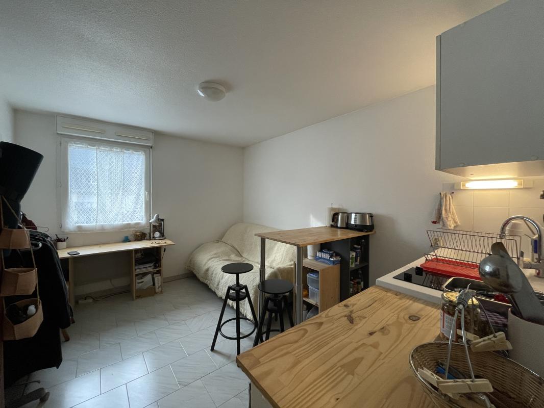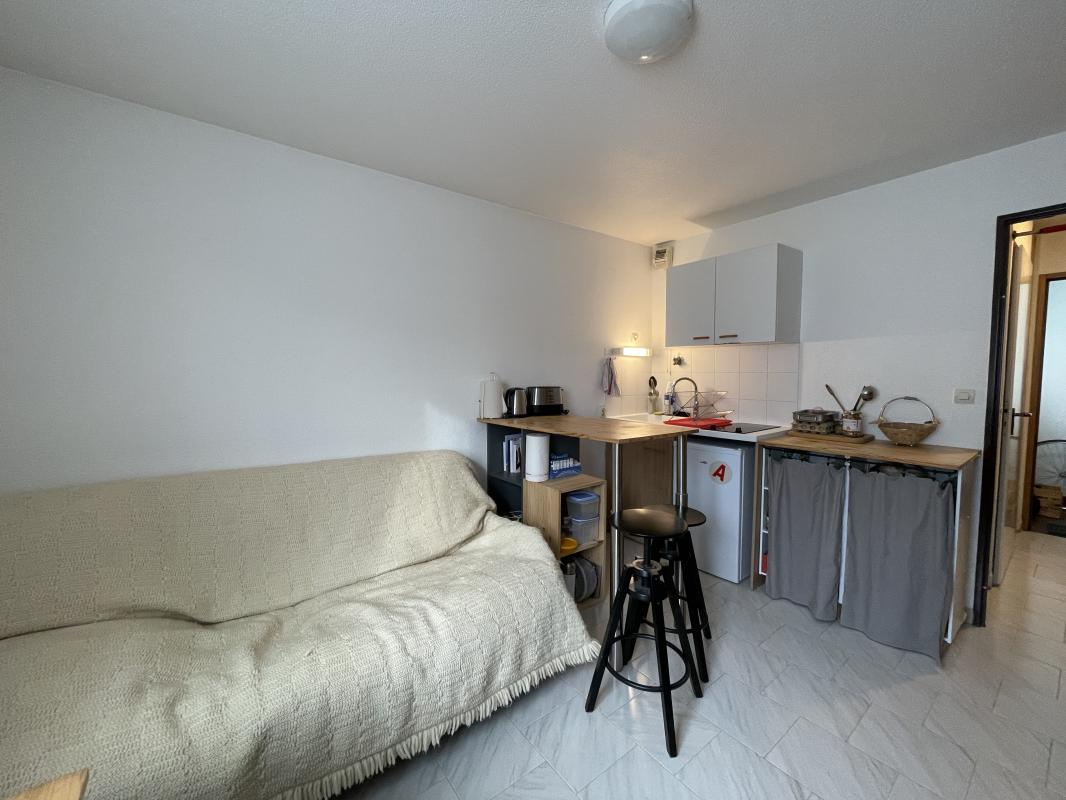 L'appartement est composé d'une entrée avec placard, d'une pièce de vie avec espace cuisine aménagée et équipée et d'une salle de bains.