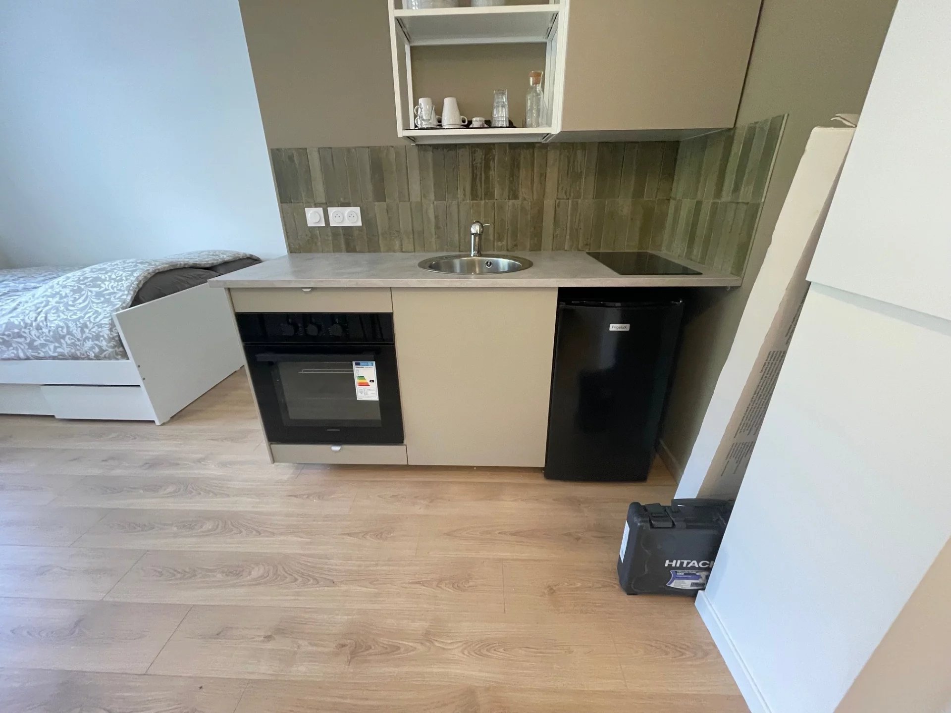 Ce studio meublé vous offre une kitchenette donnant sur la pièce principale, une salle de bain avec WC.