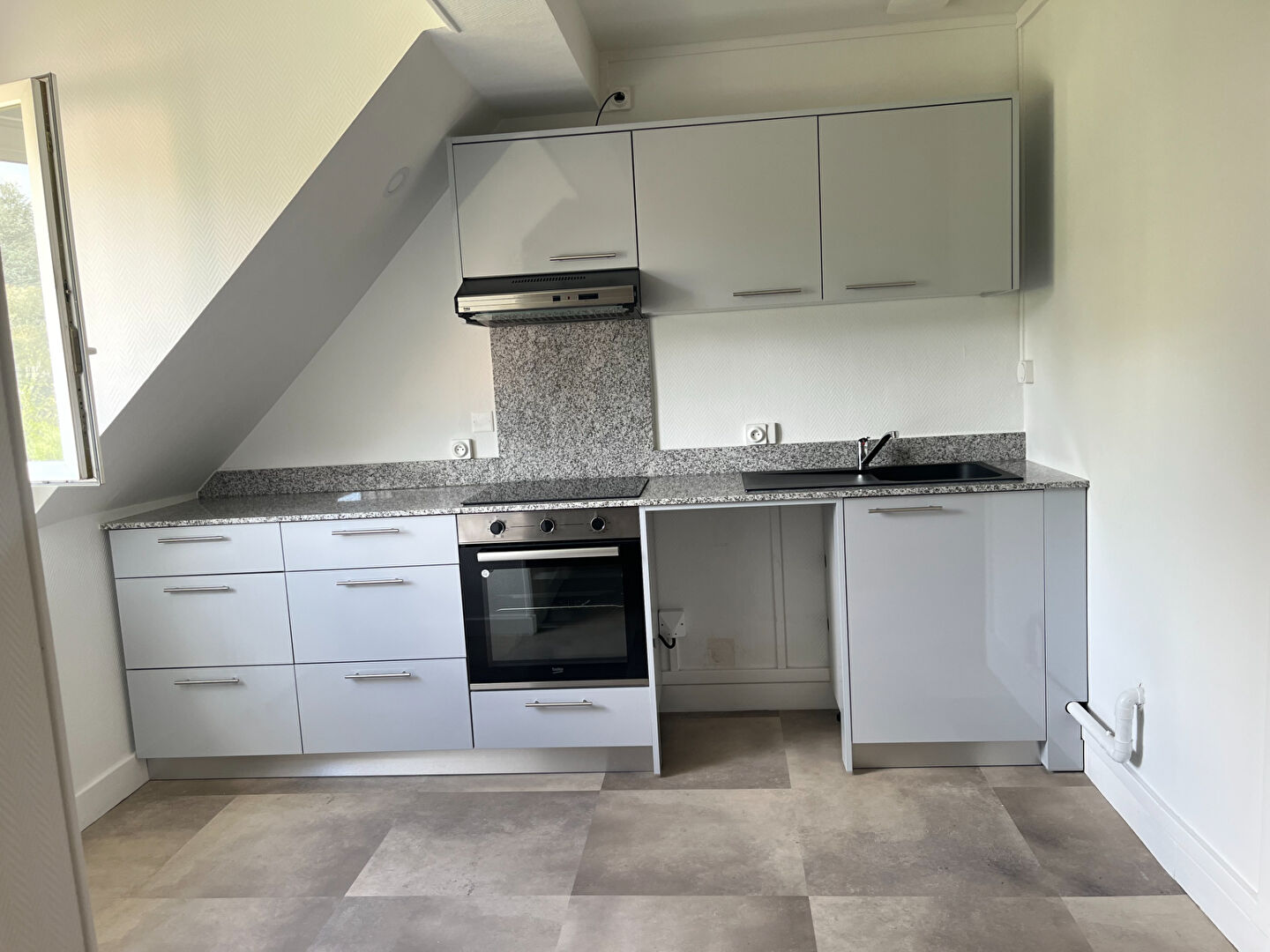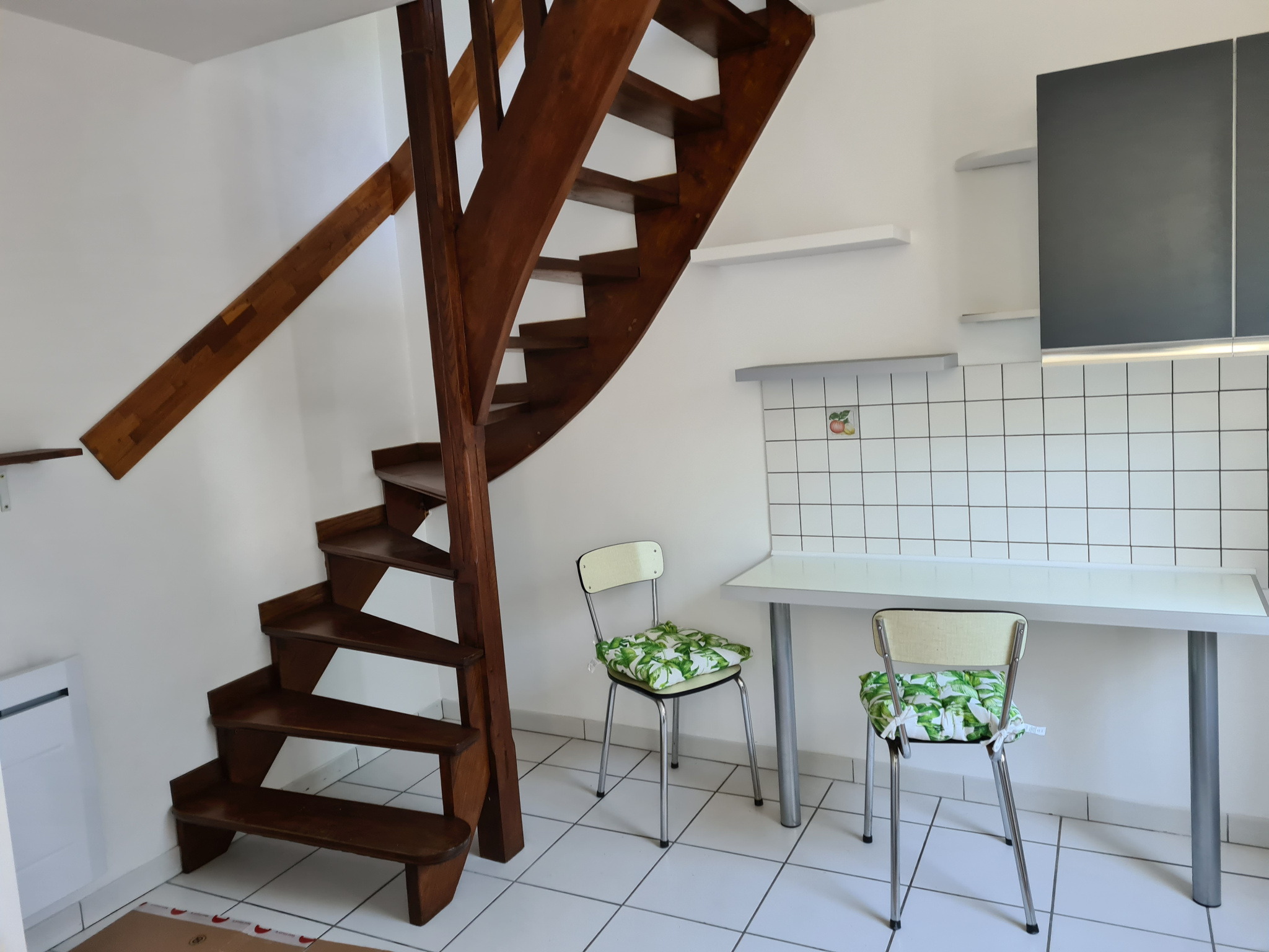 RUE LAVOISIER. CHARMANT DUPLEX AVEC TERRASSE COUVERTE. IDEAL PERSONNE SEULE OU JEUNE COUPLE. UNE CUISINE EQUIPEE (meubles de rangement et plaques de cuisson) AVEC COIN REPAS, UN SALON, UNE CHAMBRE, UNE SALLE DE BAINS ET UN W.C. MURS BLANCS. FENETRES PVC DOUBLE...
