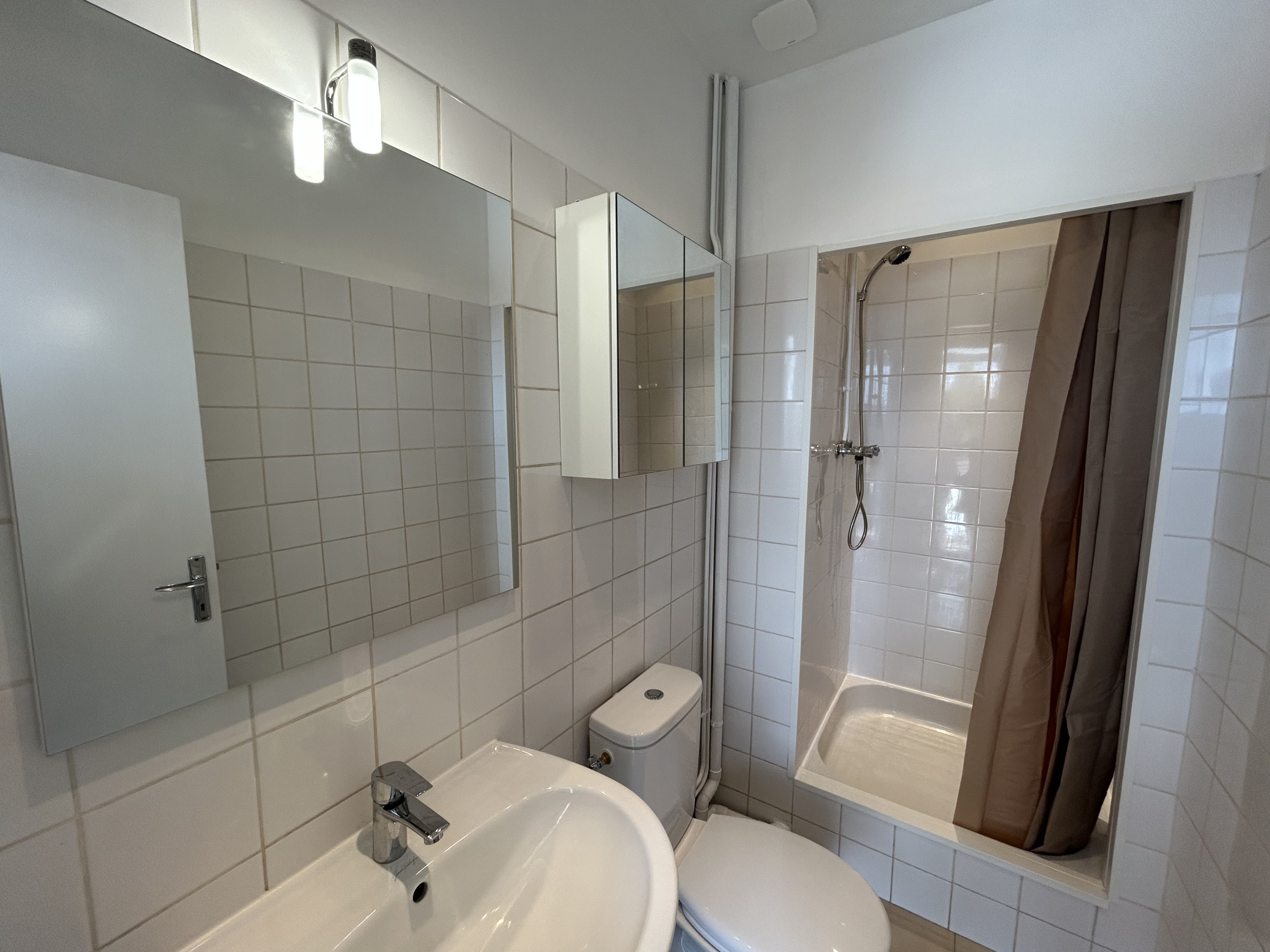 AGREABLE T1 MEUBLE PRET A HABITER LUMINEUX ET EN PARFAIT ETAT DANS RESIDENCE SECURISEE PAR PORTE A CODE ET INTERPHONE. UNE ENTREE AVEC RANGEMENT DESSERVANT UNE CUISINE EQUIPEE ...