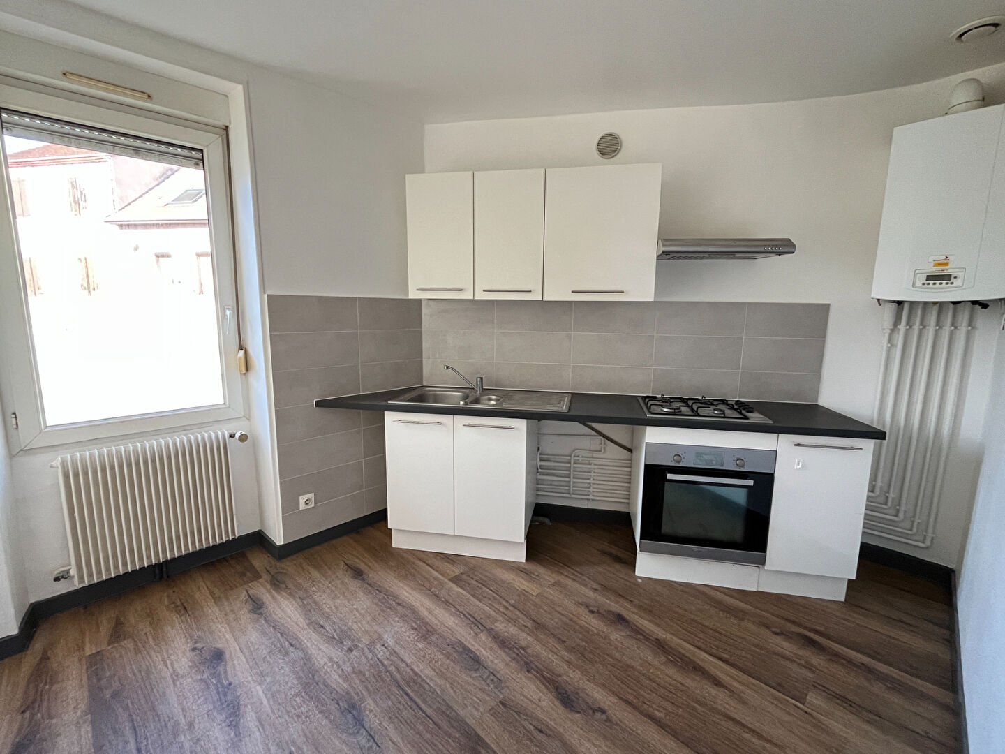 Rue Président Wilson - Appartement T3 d'environ 55m² au 1er étage d'un petit immeuble, entièrement rénové en 2023, comprenant une entrée, une cuisine équipée ouverte sur séjour, salle d'eau, WC , une chambre et un grand bureau.