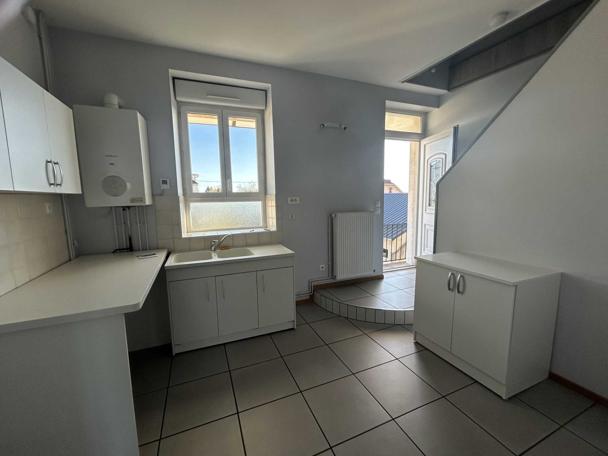 Rue Goujon LE CREUSOT - Appartement en duplex de 54m² comprenant une pièce de vie avec cuisine équipée, une salle d'eau, un WC et un étage comprenant une chambre (11m²) et un bureau (8.60m²).