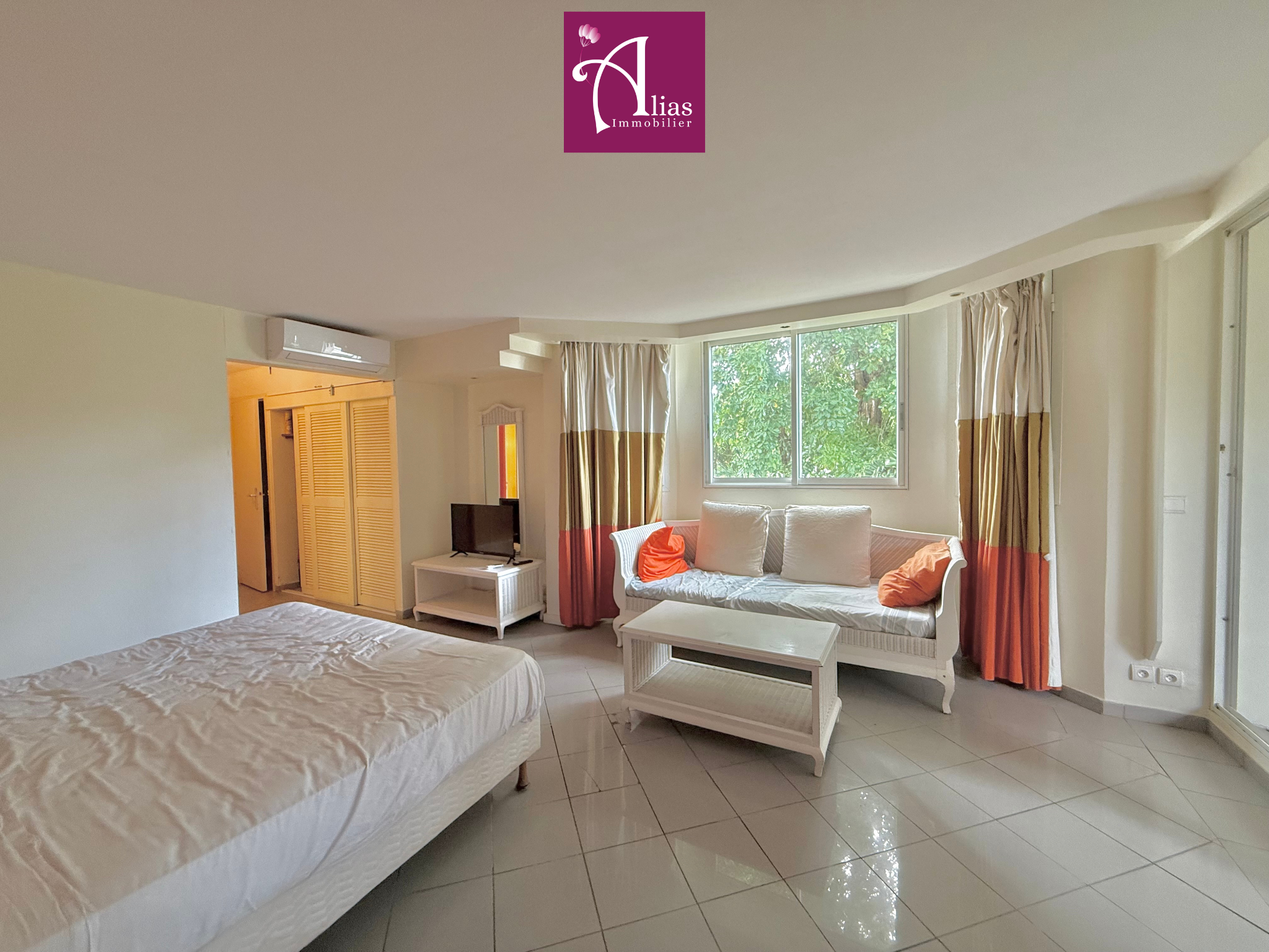 Studio non meublé situé en rez-de-jardin d'un petit bâtiment, il est composé d'une pièce à vivre climatisée avec placard et coin kitchenette aménagée et équipée, une salle d'eau avec wc et une terrasse couverte. Accès commun au jardin et à la pi...