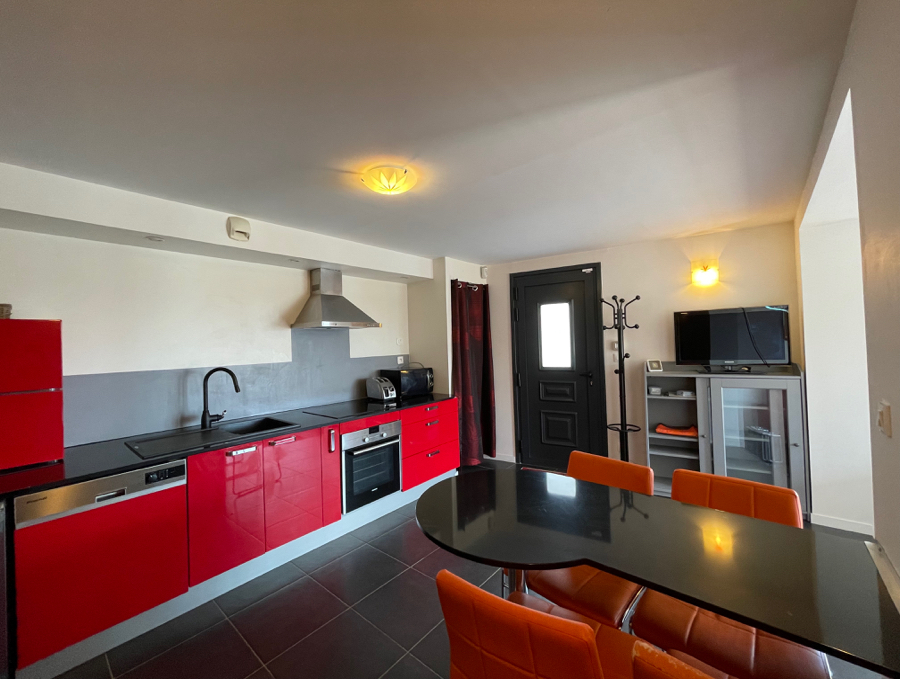 Appartement meublé avec cellier, 72,15m², en bon état comprenant un séjour, une cuisine équipée et aménagée, deux chambres dont une avec rangements et une salle de bains avec wc.