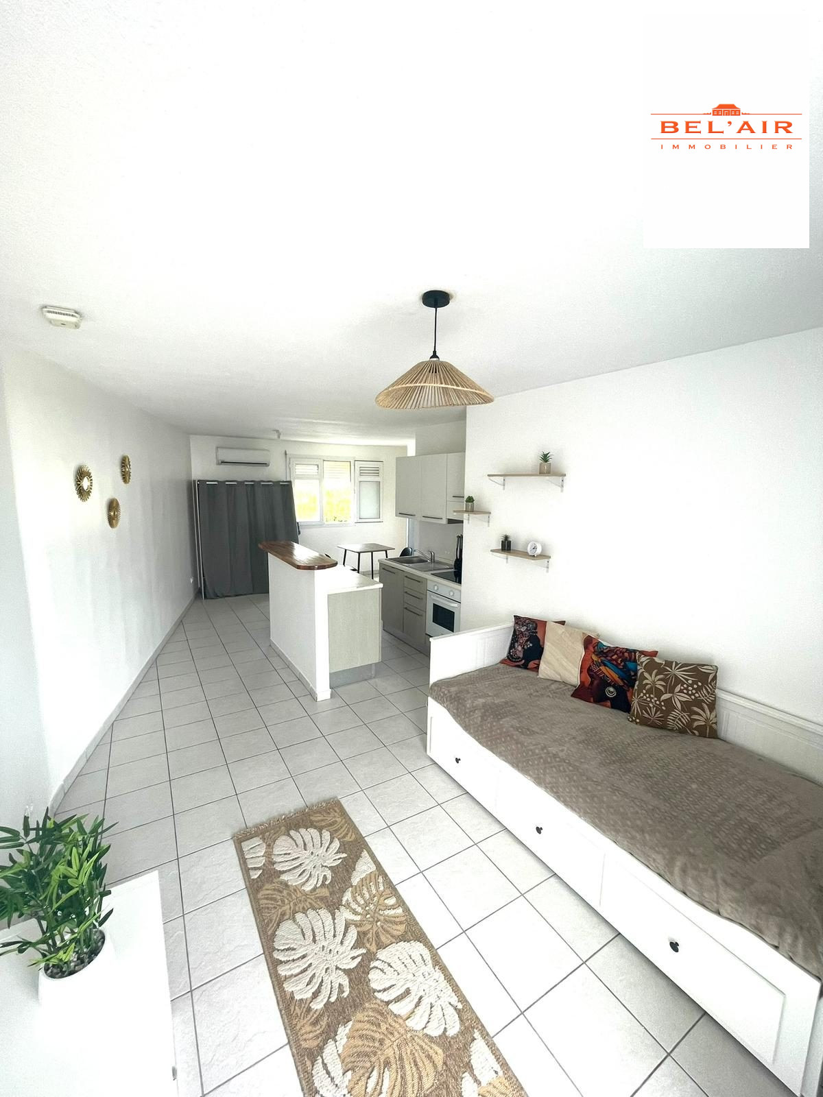 Un appartement de type F1 très joliment meublé avec cuisine aménagée et équipée, une pièce principale climatisée, une salle d'eau et une terrasse couverte.