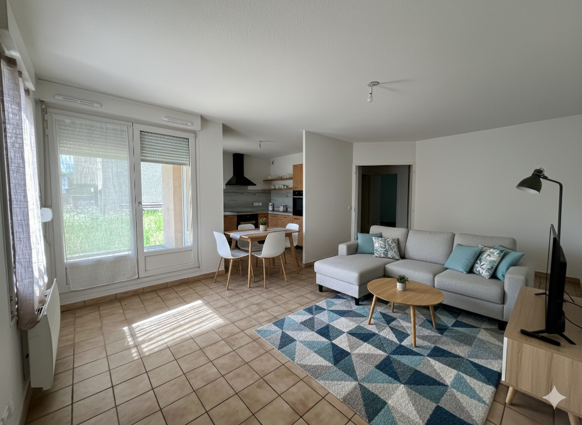 T2 lumineux en rez de jardin d'une surface de 53,72m2, il composé d'un hall d'entrée avec placard, d'une cuisine meublée ouverte sur séjour, une chambre avec p...