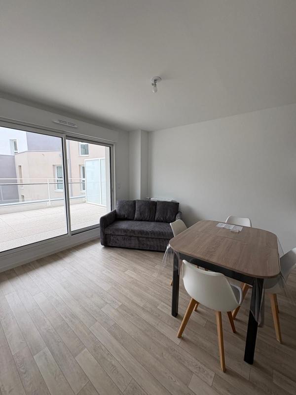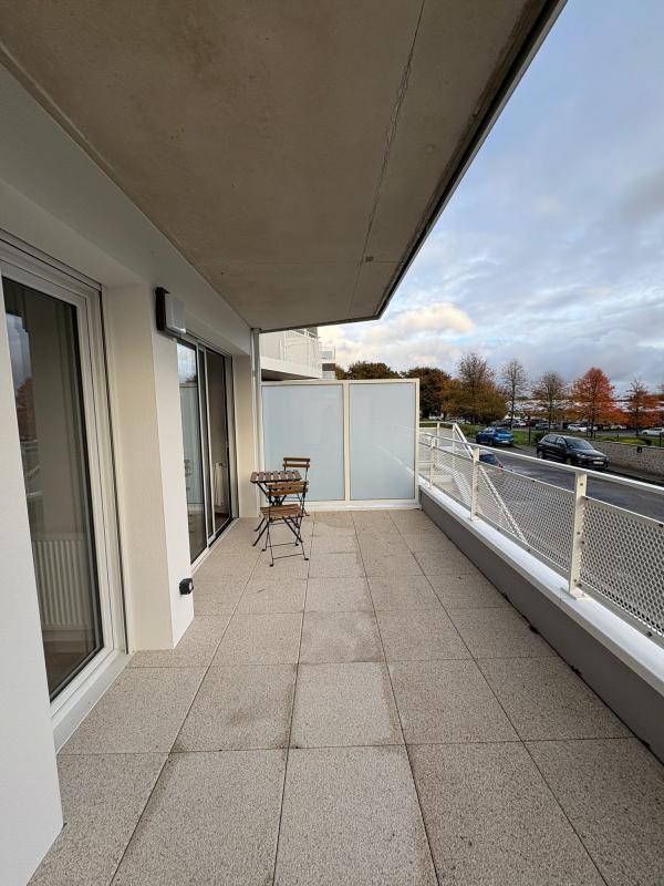 Nouveauté dans immeuble neuf (MARIE LIZIG ) appartement T2 meublé avec terrasse au premier étage, entrée avec placards, pièce à vivre avec coin cuisine (plaque, hotte, frigo) chambre, salle d'eau avec wc. Cellier sur le palier, place de parking privée.<...