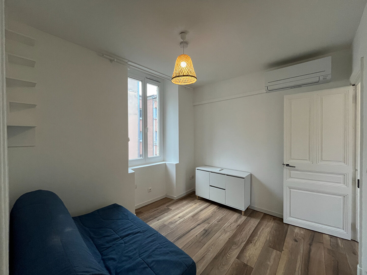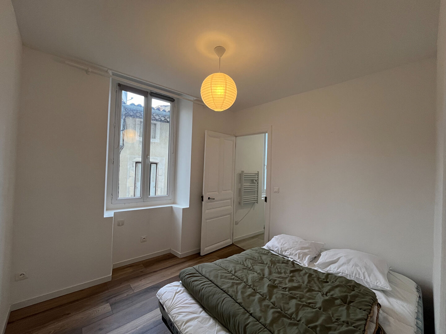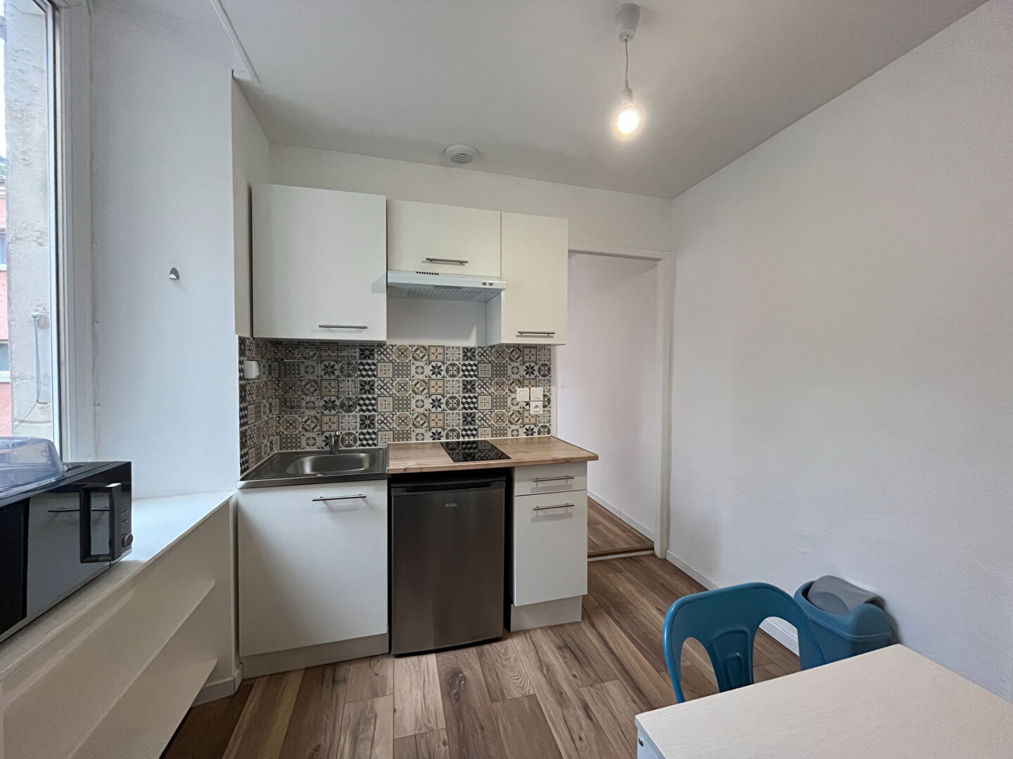 Appartement T2 entièrement meublé de 31m² habitables, comprenant une cuisine aménagée et équipée (plaques, hotte, four, réfrigérateur), un salon, une chambre, une salle d'eau et un cellier/WC.