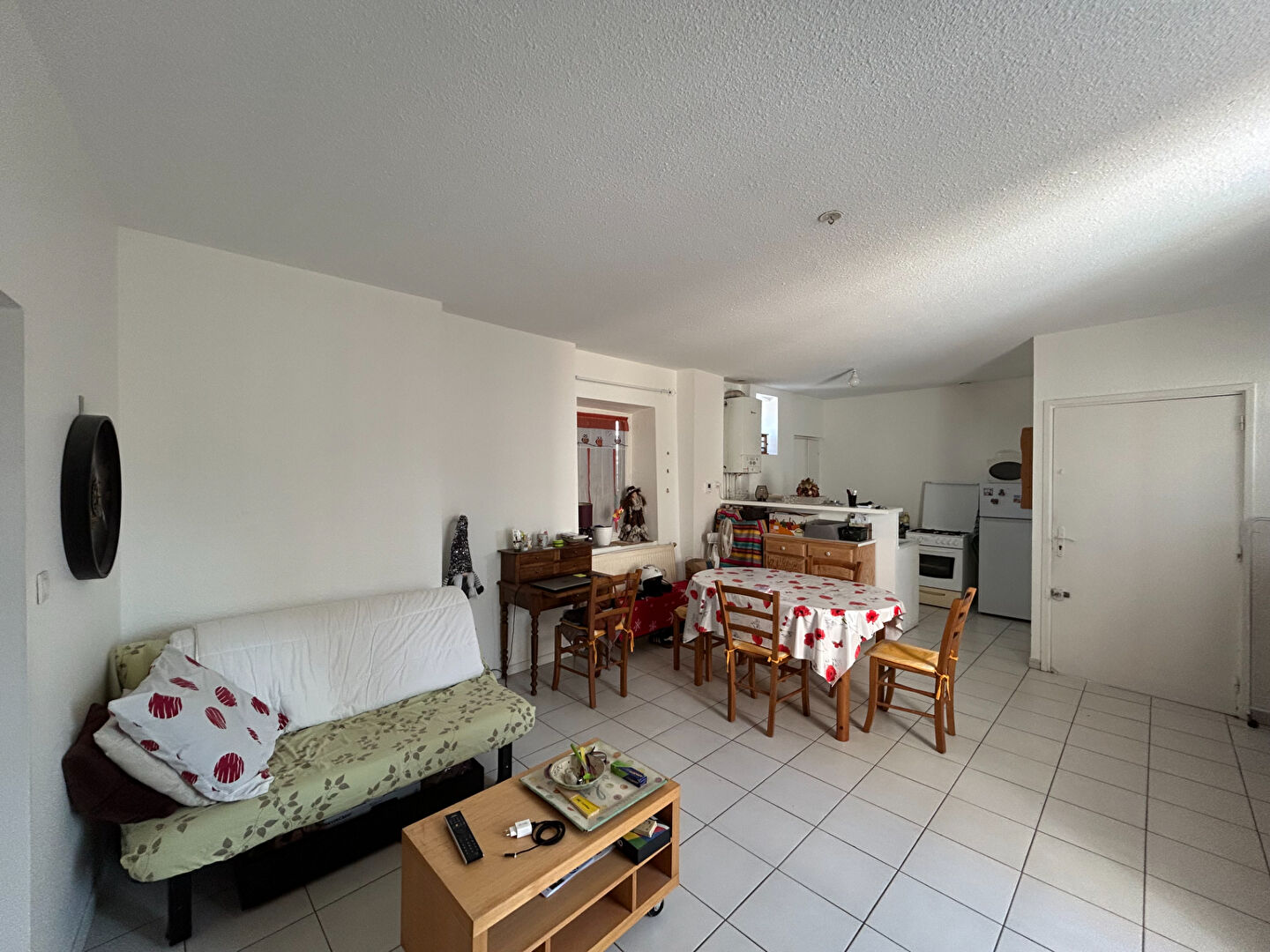 Appartement T2, situé au 3ème étage sans ascenseur, comprenant une pièce de vie avec cuisine aménagée (plaques), une chambre en mezzanine et une salle d'eau avec WC.