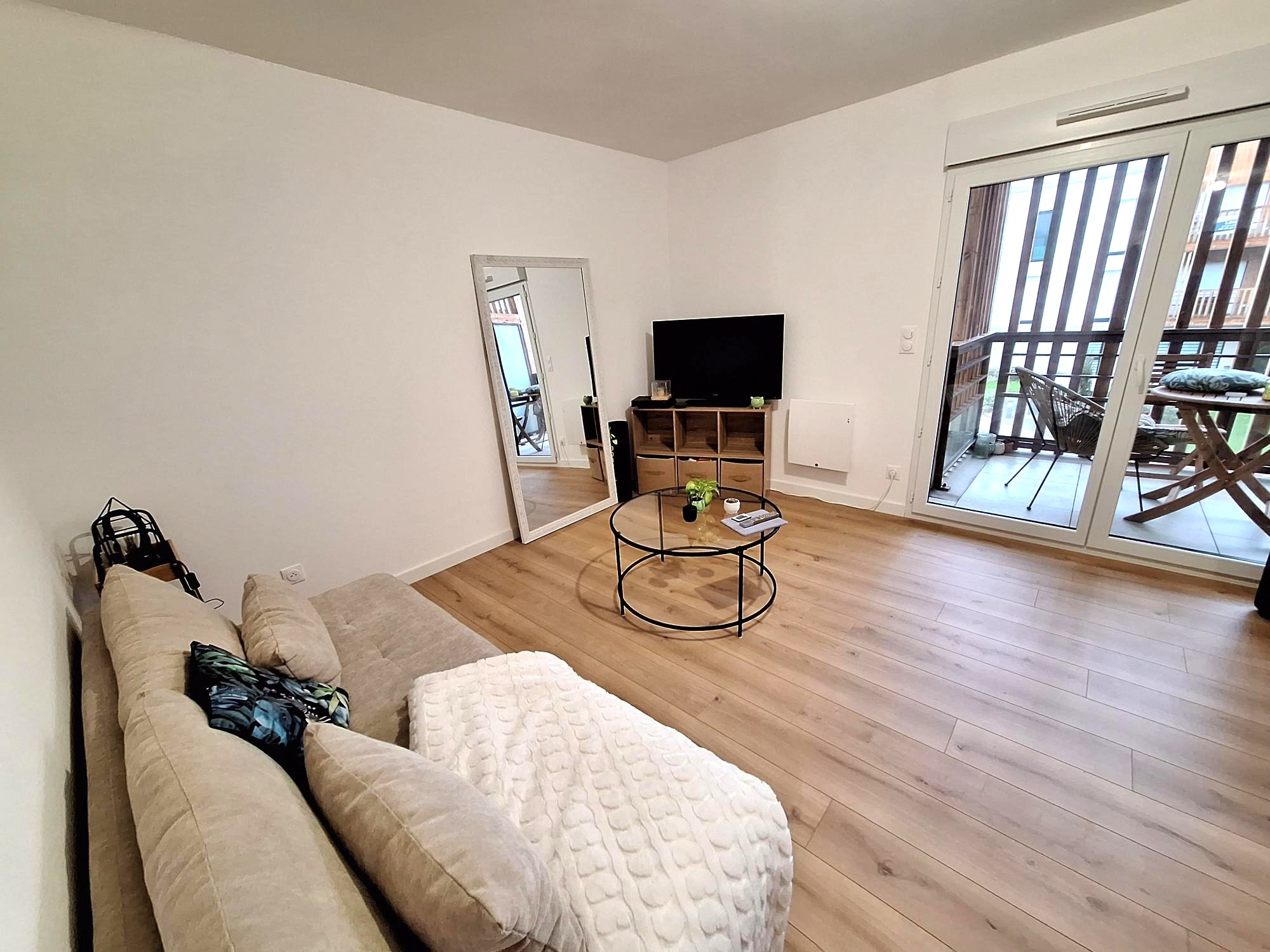 Situé au dernier étage de la résidence, appartement T3 meublé en bail mobilité, composé d'une entrée, un séjour salon donnant sur un balcon exposé sud est, une cuisine ouverte aménagée et équipée, une chambre et un coin nuit, une salle de bains, wc séparé...