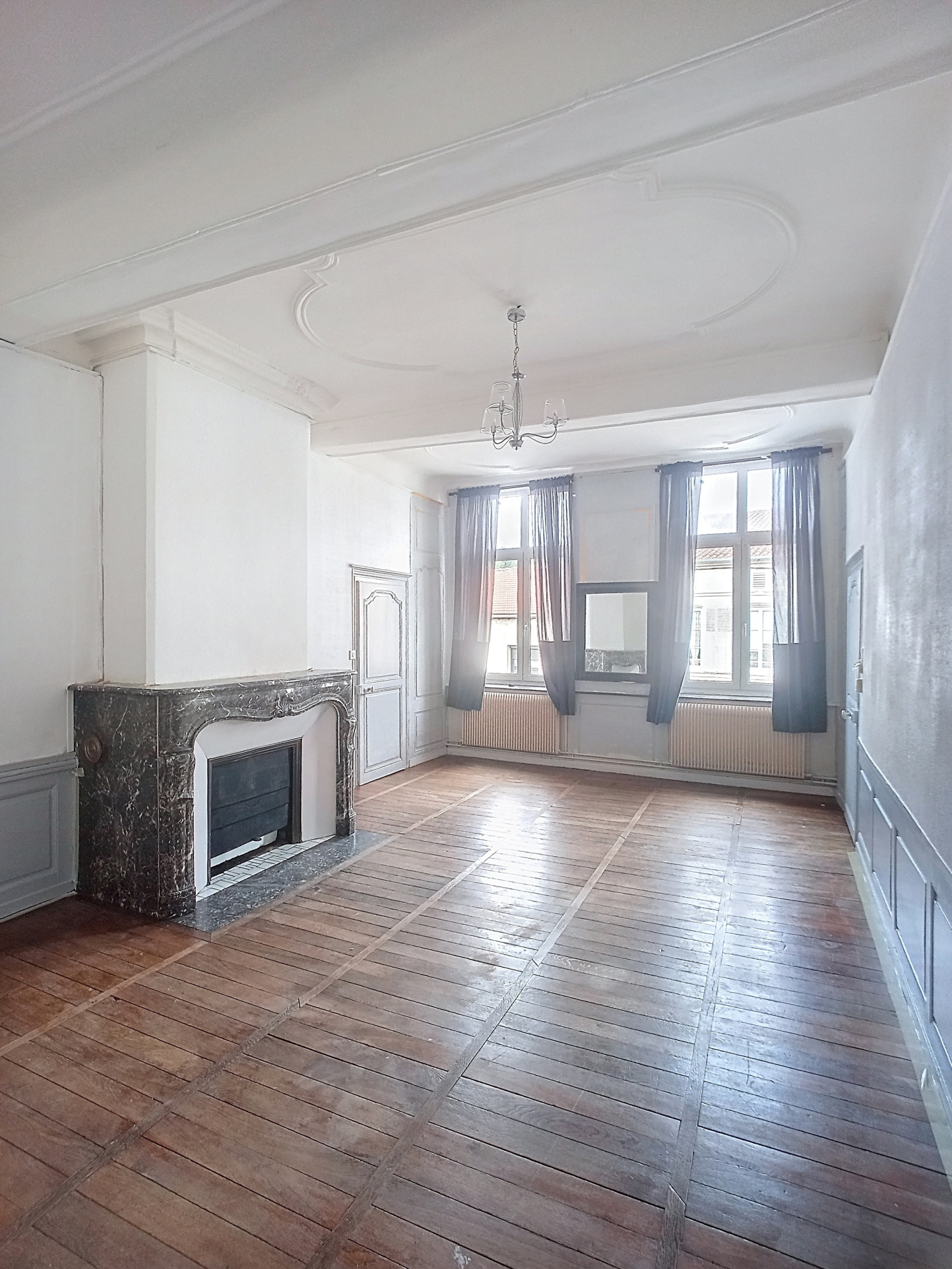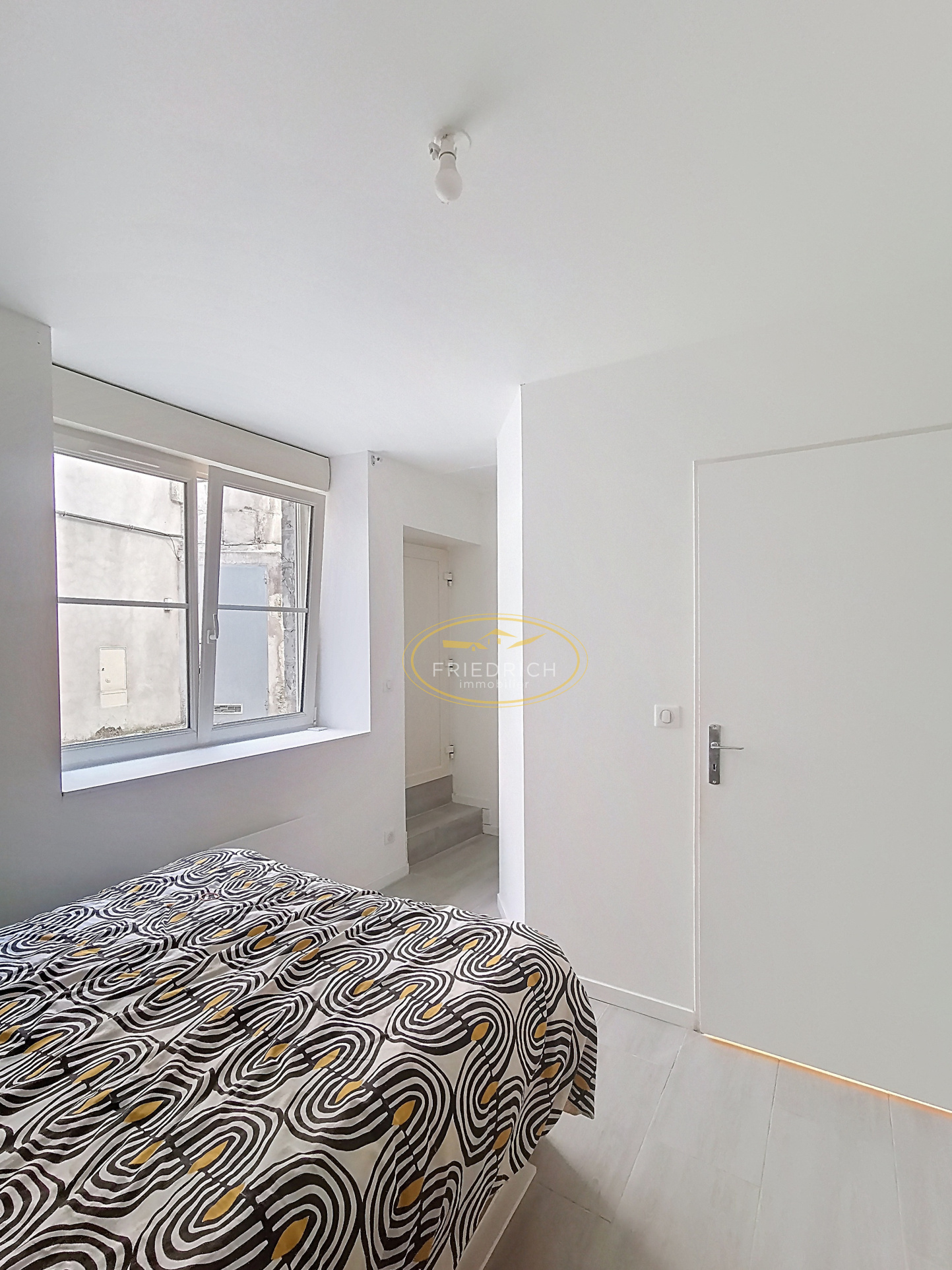 Situé à proximité du centre-ville dans un petit immeuble composé de trois logements, cet appartement lumineux, rénové, au 1er étage, comprend :