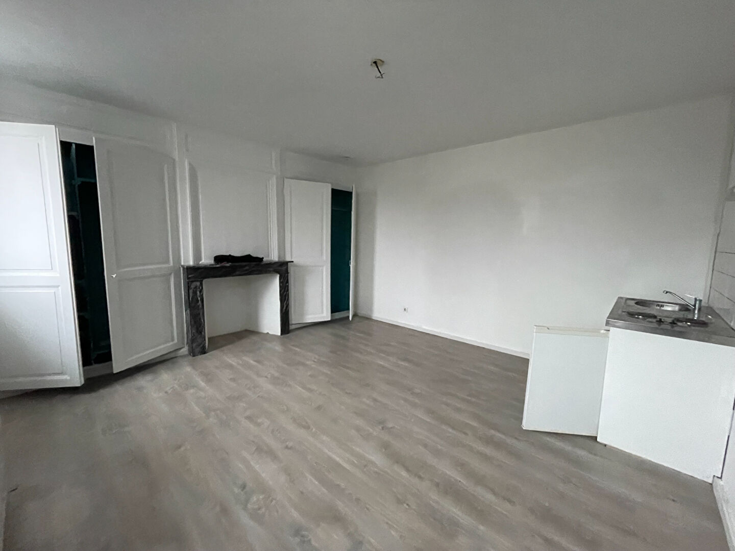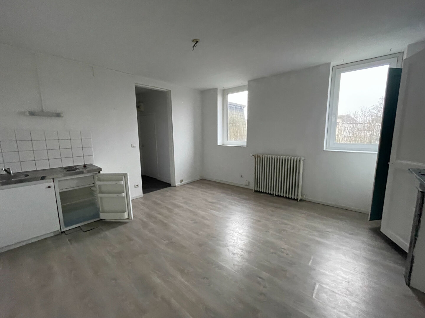 LILLE CORMONTAIGNE, rue d'Alembert, grand studio en RDC à louer offrant une entrée avec placard, pièce de vie avec cuisine ouverte (bloc évier), sal...