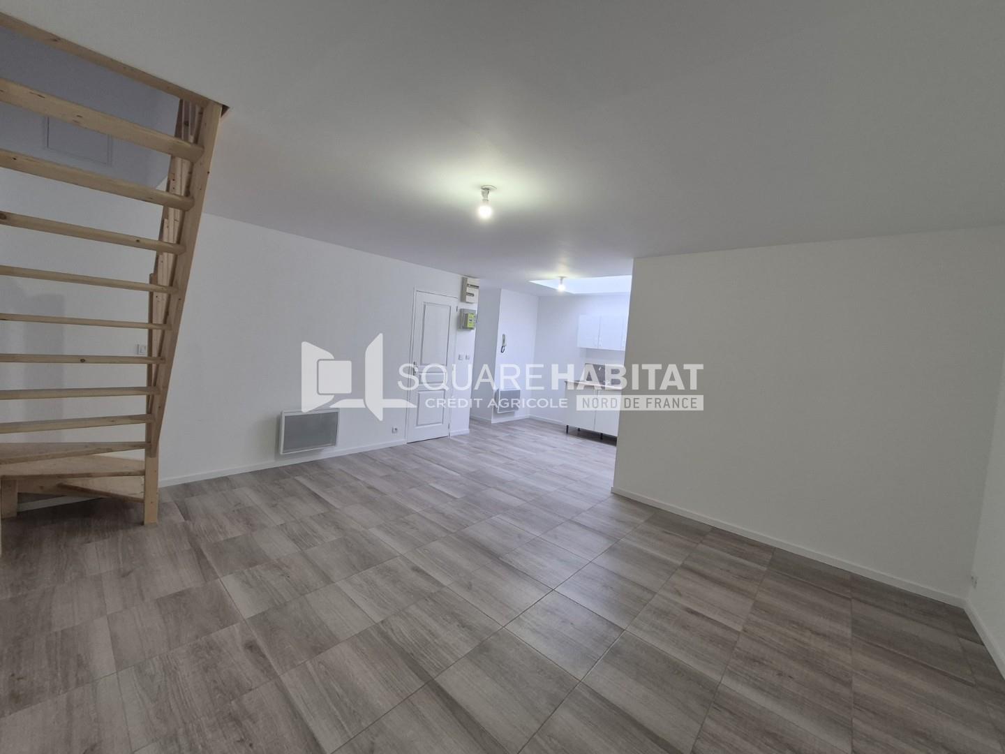 A louer, rue Roger Salengro ce T3 complétement refait à neuf de 53.17m². Situé en retrait de rue, ce T3 atypique se compose d'une entrée, un séjour ouvert sur la cuisine semi équipée avec dôme de lumière, une salle de douche et wc séparé. A l'étage 2...