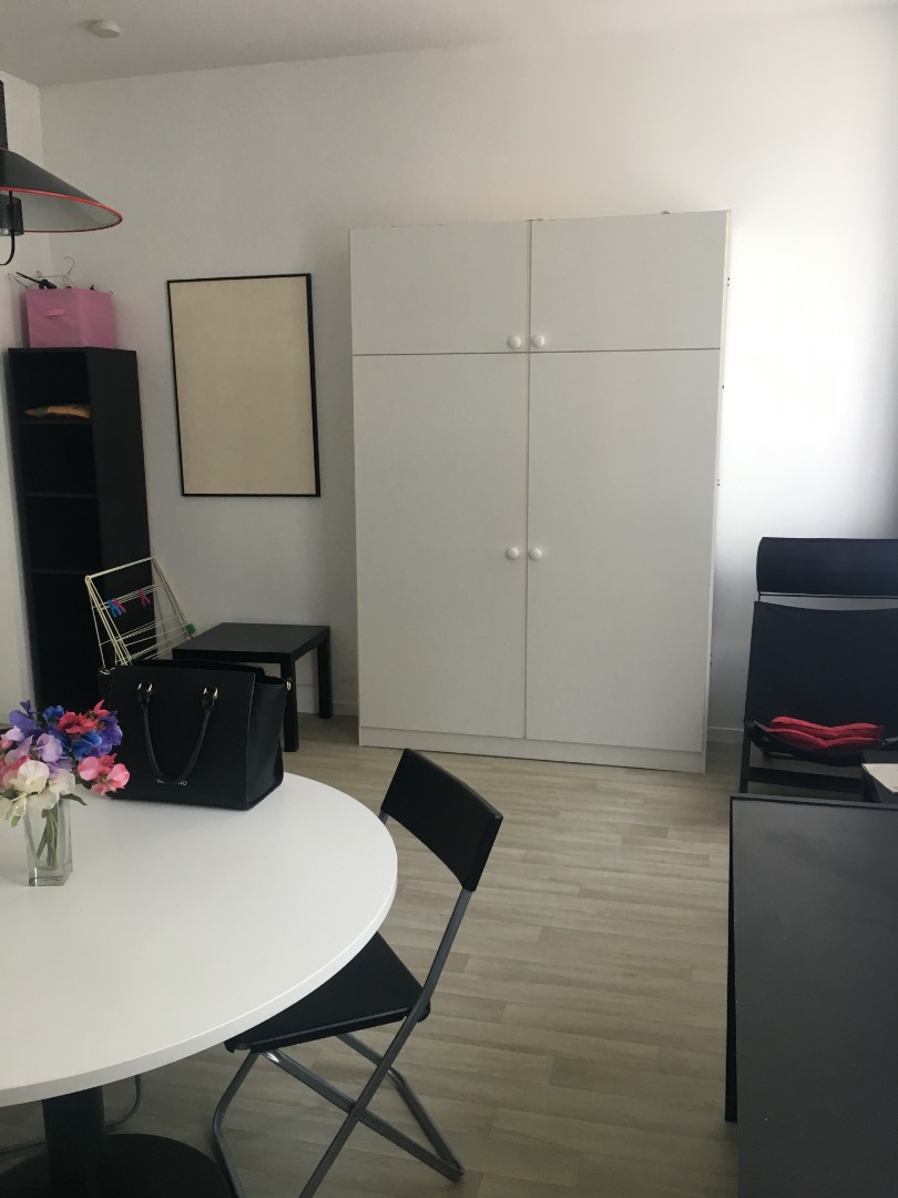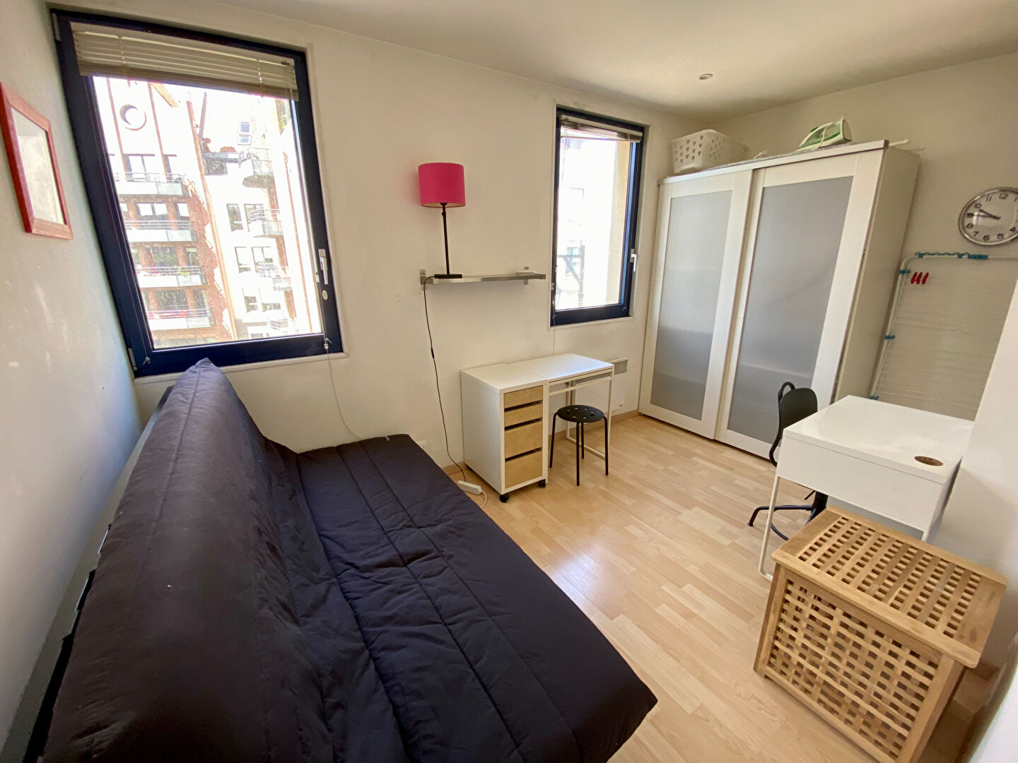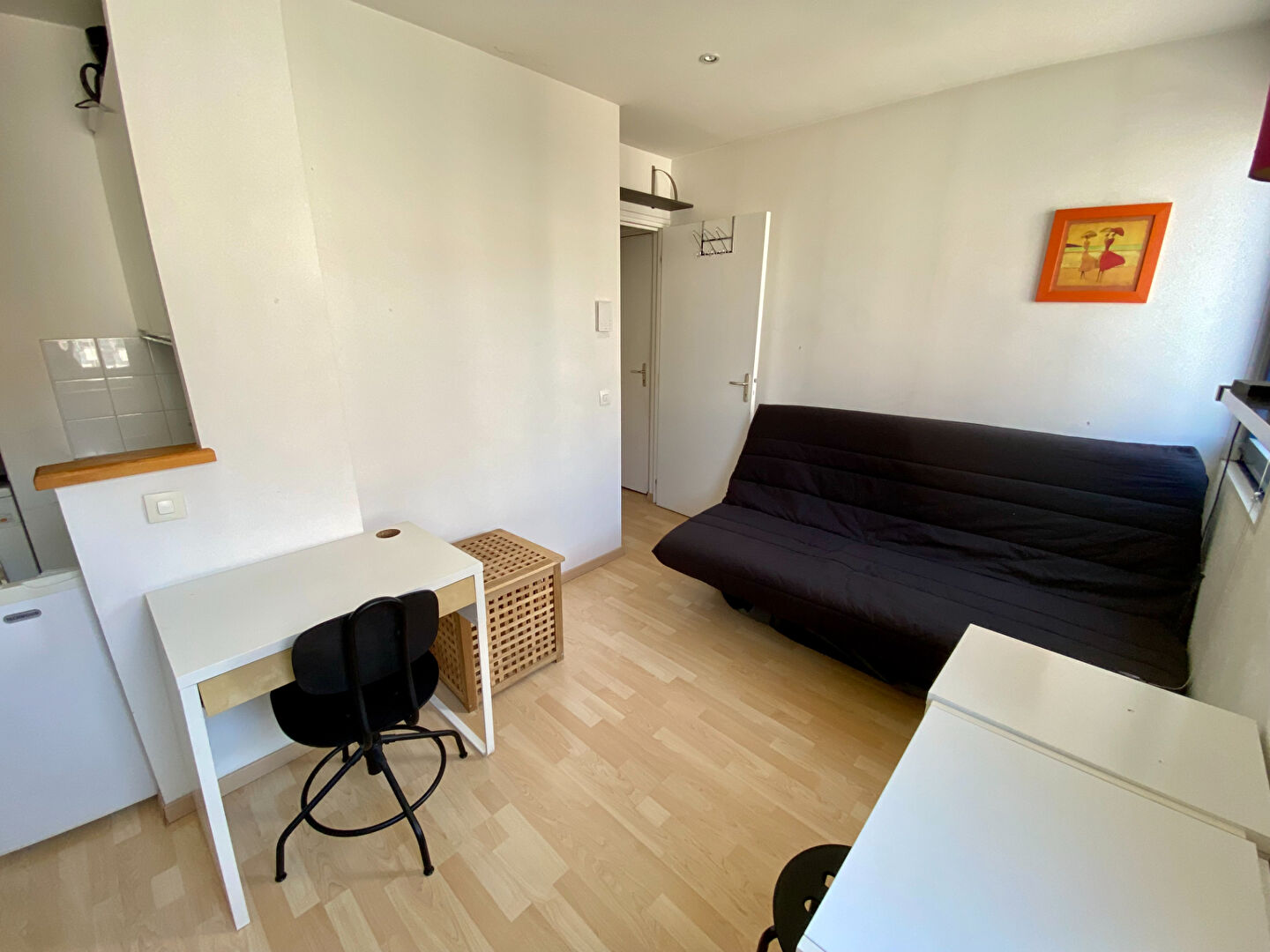 République, au dernier étage d'un petit immeuble sécurisé situé au pied du métro, appartement type 1 comprenant une pièce de vie avec cuisine ouverte et équipée (réfrigérateur, plaques), un espace nuit en mezzanine, une salle de bains et wc séparés. Chauf...