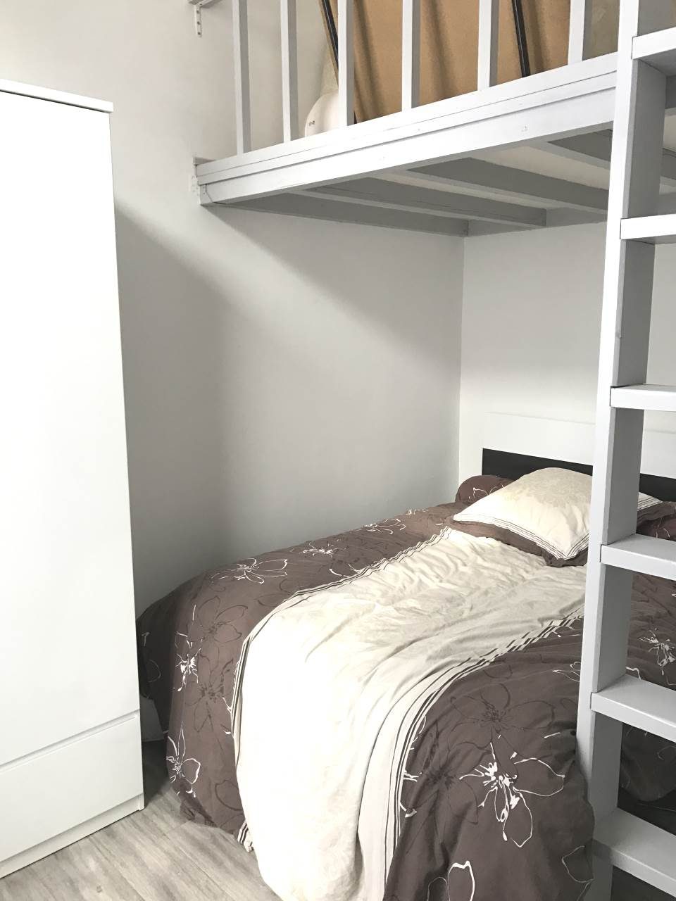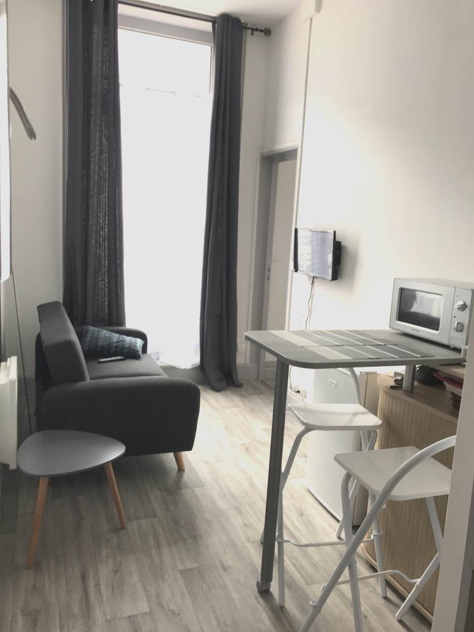 Lille hyper centre. T2 meublé de 21,70 m² entièrement rénové et situé au 1er étage. Se composant d'une pièce de vie avec coin cuisine aménagée et équipée (plaque de cuisson et frigo), mezzanine servant d'espace de rangement, 1 chambre (avec 1 lit dou...