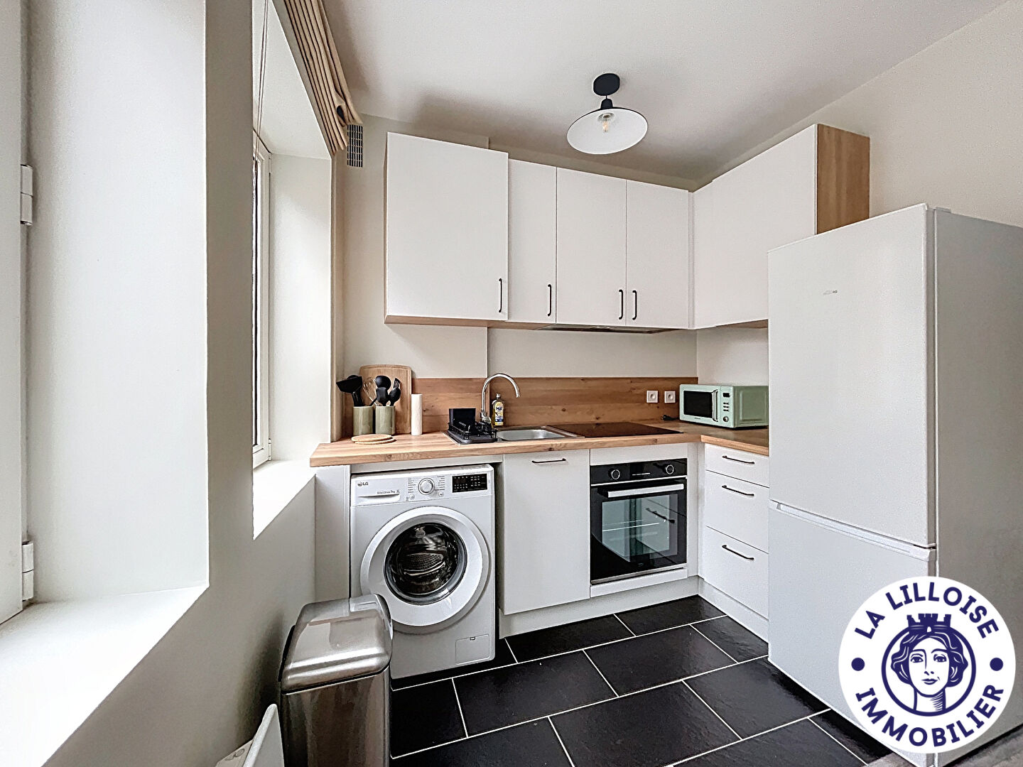 La Lilloise Immobilier vous propose ce charmant T1bis meublé situé en plein coeur du centre-ville. Il se compose d'une belle entrée avec rangement, d'une pièce de vie (télévision) avec cuisine ouverte entièrement équipée (lave-linge et sèche-linge), ...