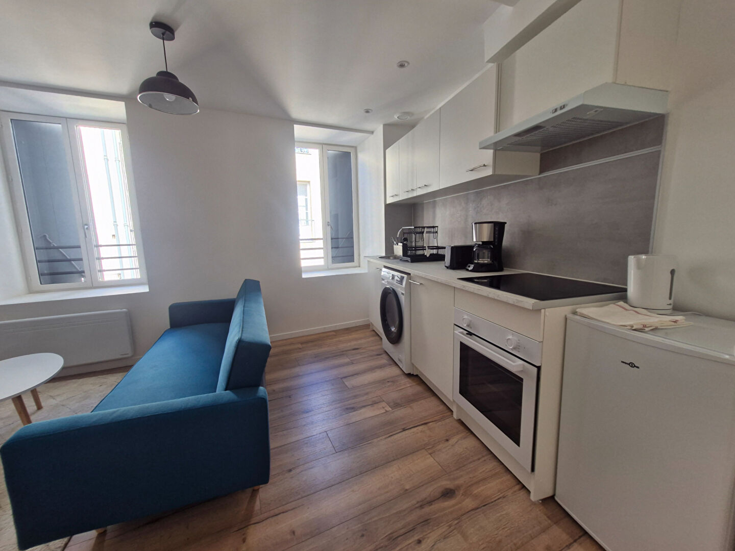 Studio équipé en rez-de-chaussée et à 2 pas de centre-ville offrant un coin cuisine et salon.