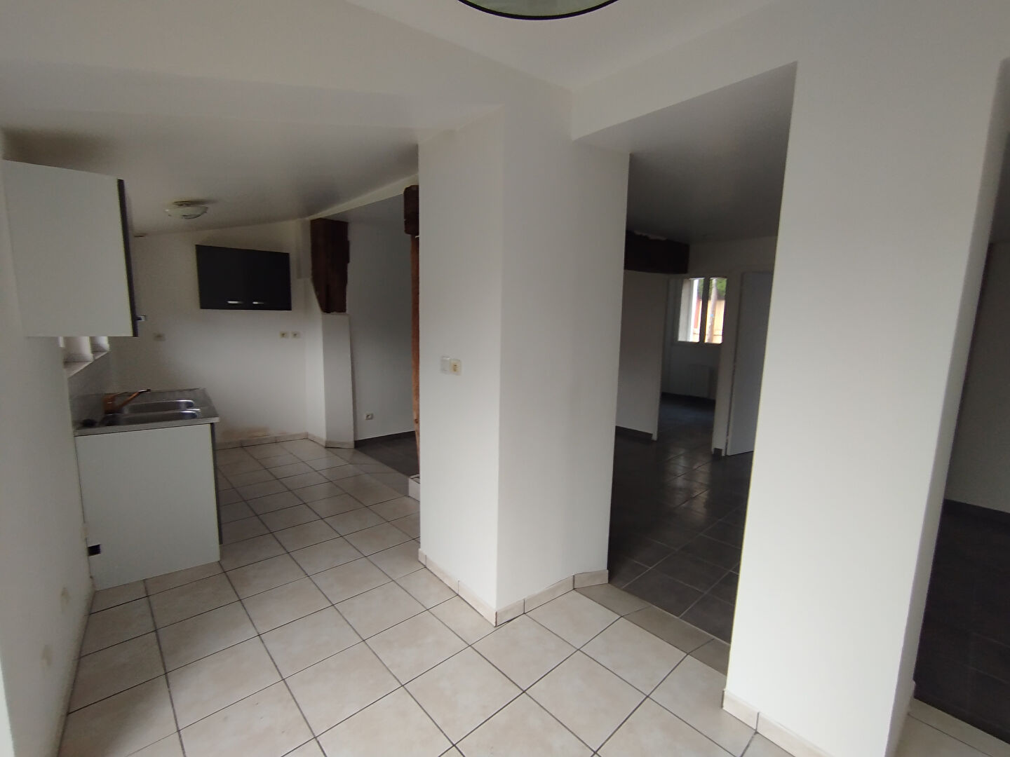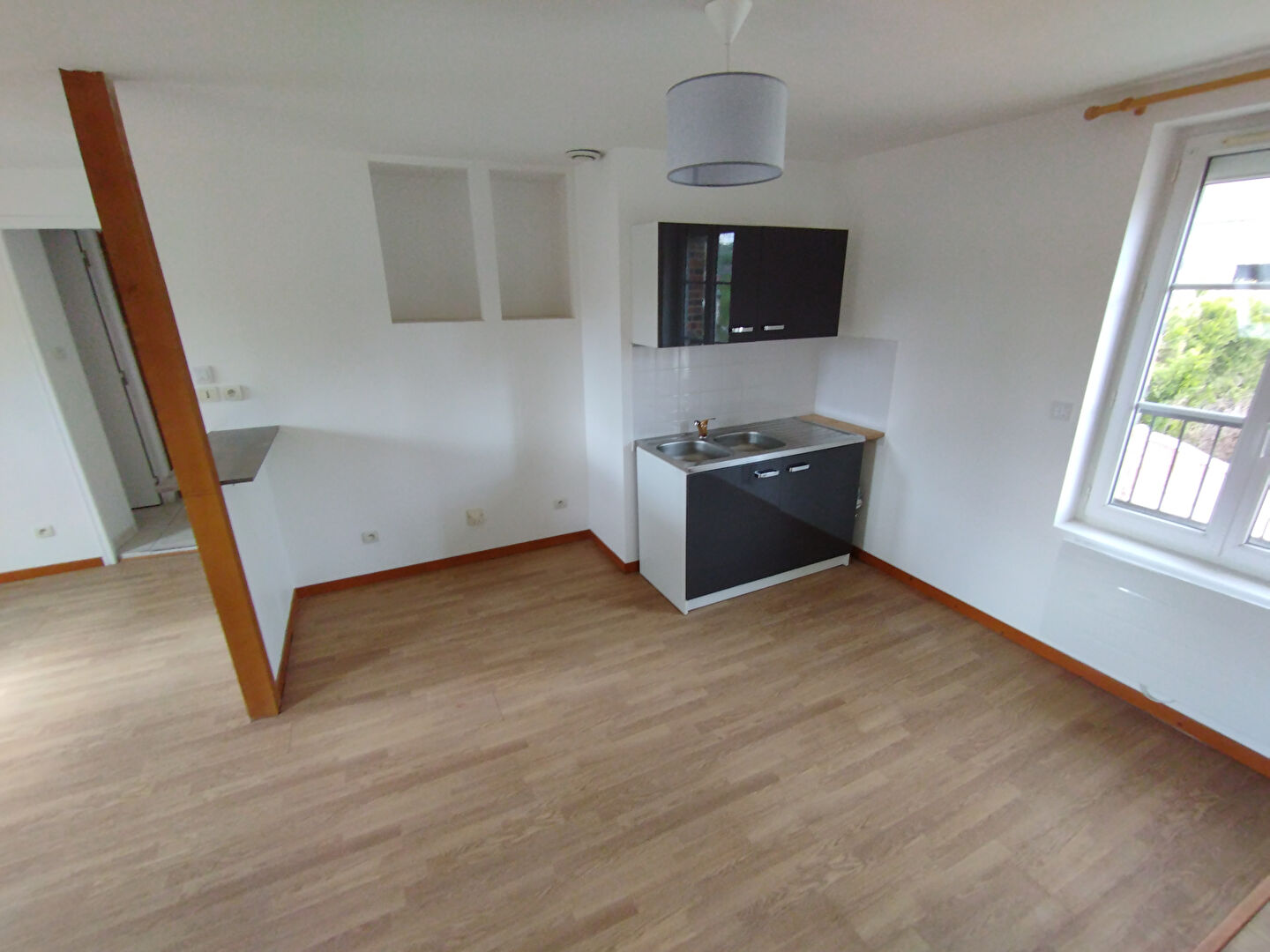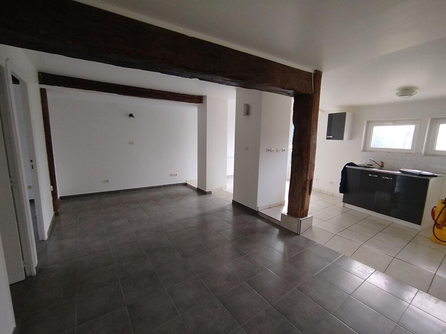 A louer: grand appartement de 3 pièce situé au premier étage d'n petit ensemble immobilier. Il est composé d'une vaste pièce à vivre avec cuisine ouverte aménagée et partiellement équipée, 2 chambres, une salle de bains et WC séparé. Un cellier et un...