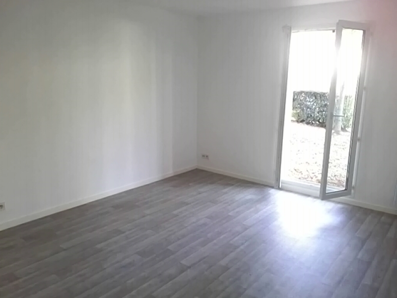 Appartement de type 2 en rez-de-chaussée comprenant une pièce de vie avec cuisine ouverte aménagée , équipée (hotte, plaque de cuisson, machine à laver), accès à un agréable jardinet, une chambre, salle de bains avec toilettes.