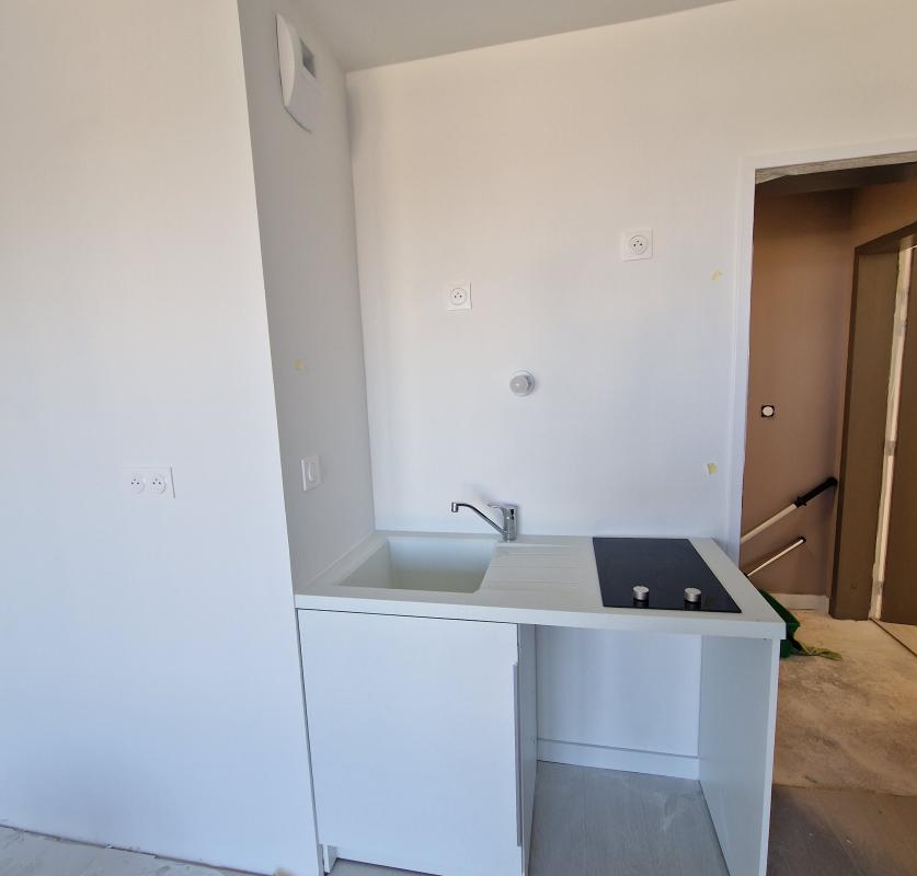 Studio SEMI-MEUBLE comprenant une pièce de vie avec placard, coin kitchenette (plaques, frigo top), une salle d'eau avec wc.
