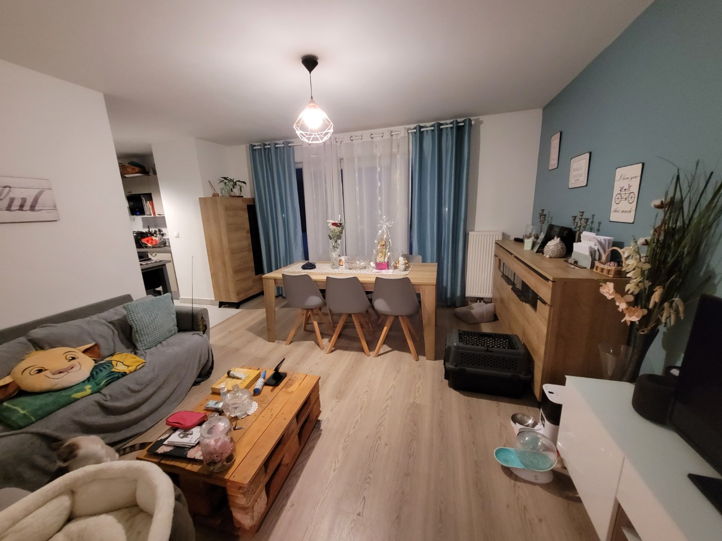Appartement de type 3 dans une résidence récente à LOOS avec balcon et terrasse et 2 places de parking privatives. Il dispose d'un hall d'entrée, salon séjour avec cuisine équipée ouverte, deux chambres, salle de bains, wc. Les informations sur les r...