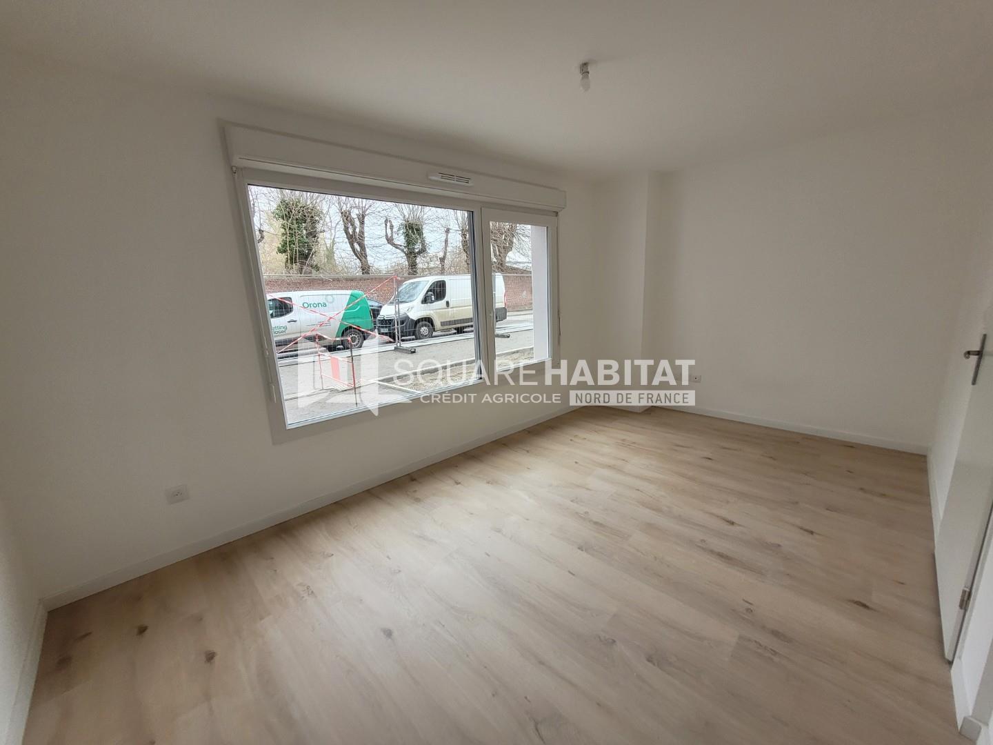 LOOS, rue Jean baptiste Deroullers, grand appartement de type 2 à louer dans une résidence calme et sécurisée offrant un hall d'entrée avec placard, séjour do...