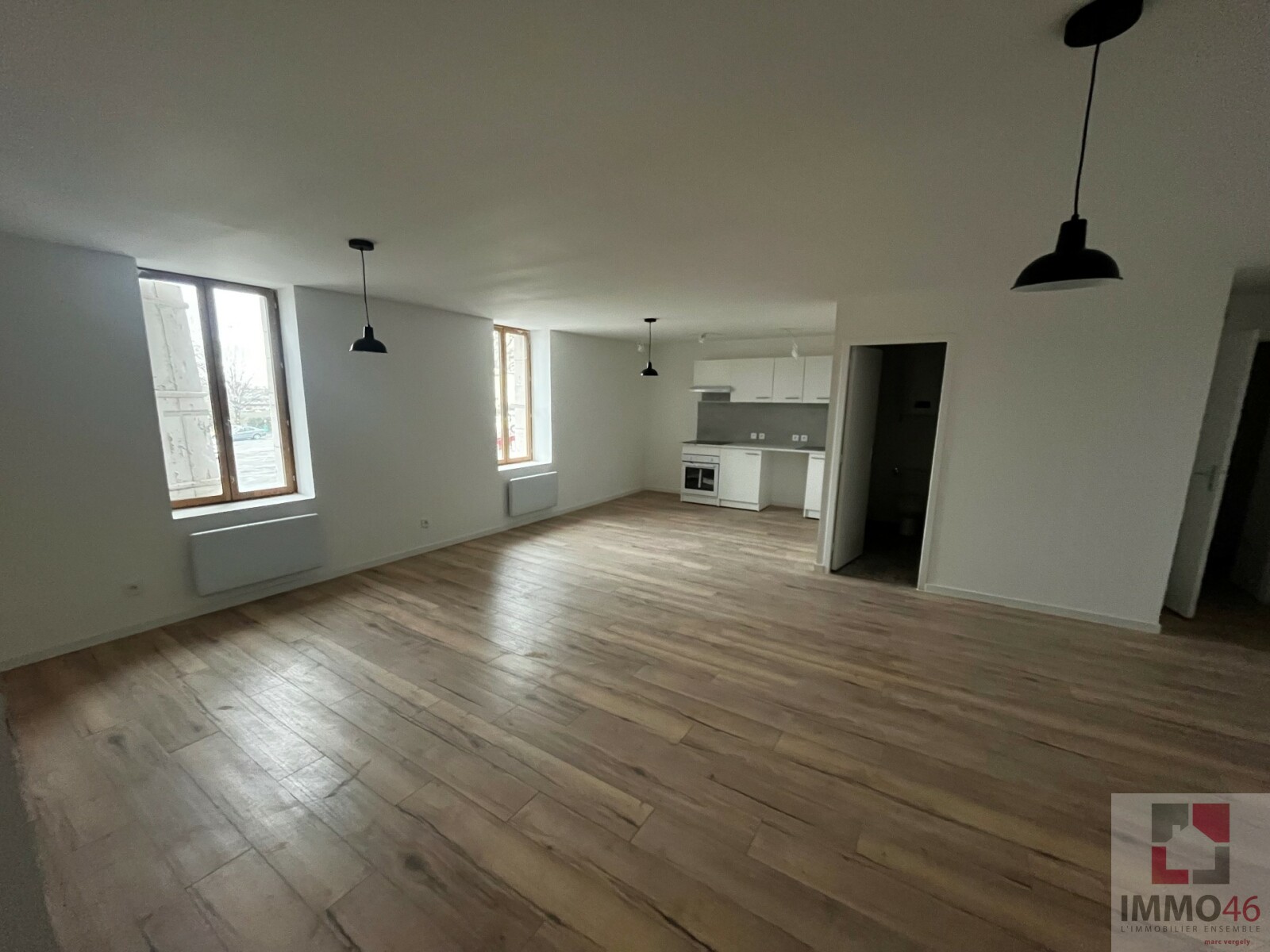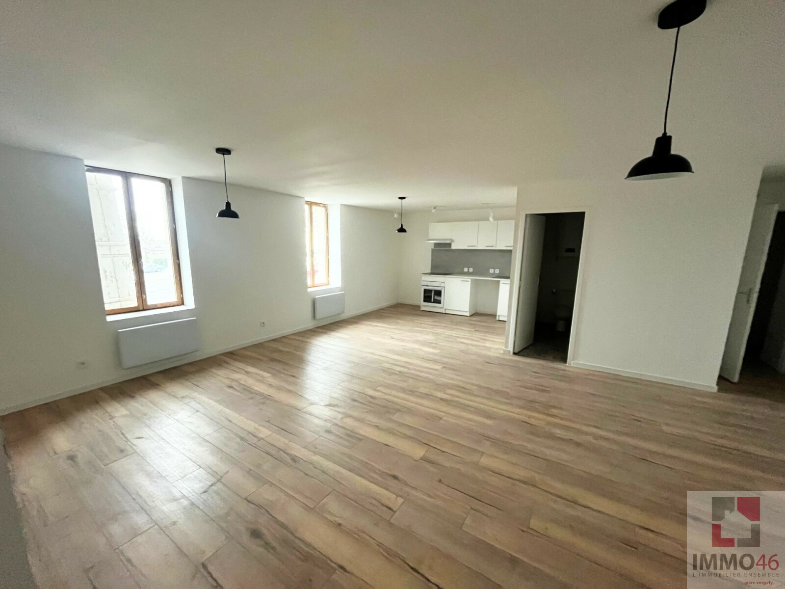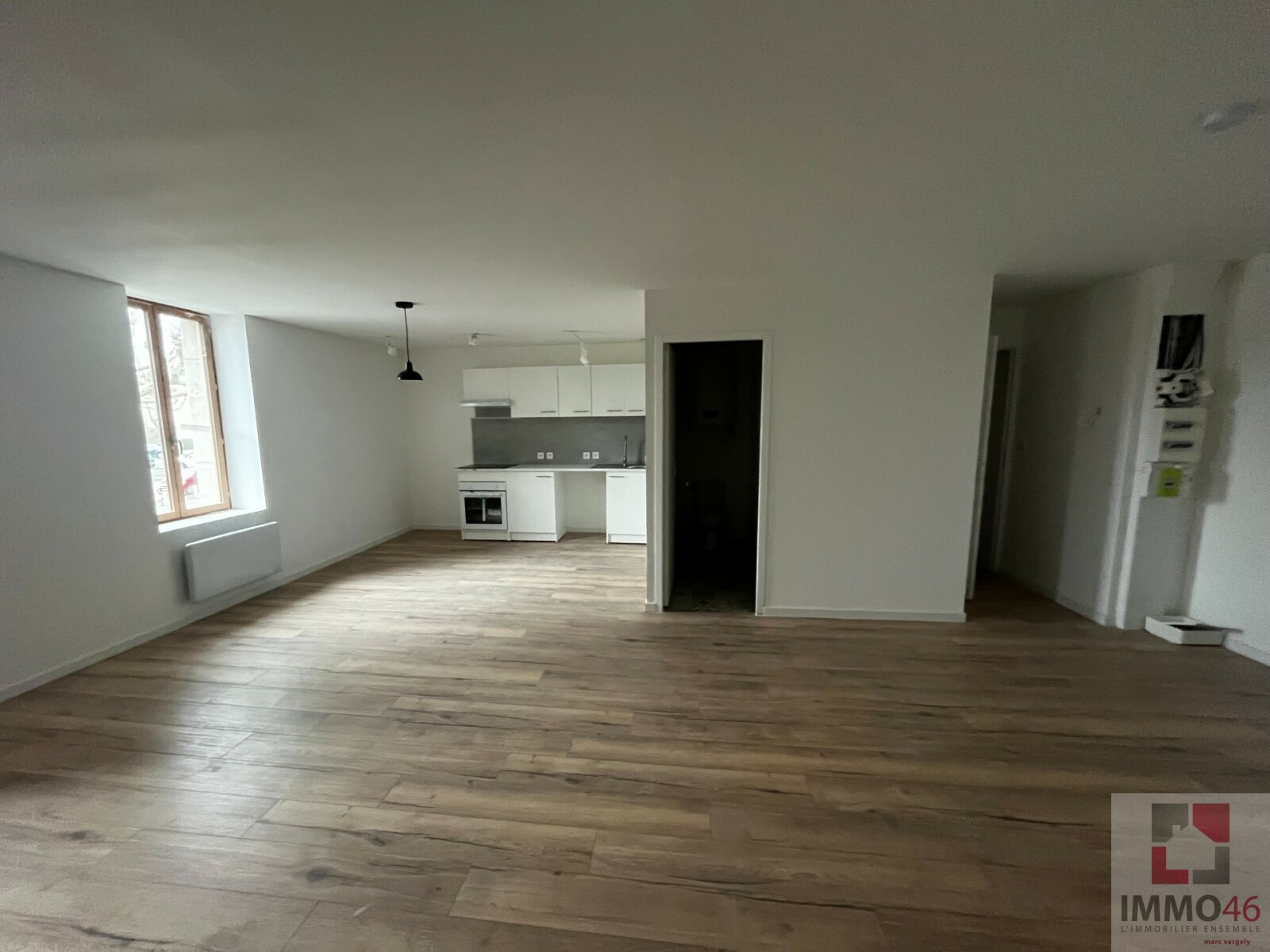 IMMO46 vous propose à la location cet appartement en rez-de-chaussée de 48m² non meublé, rénové entièrement il y a un an. <BR><BR>L'entrée donne sur la pièce de vie, cuisine équipée en suivant, un couloir donne accès au WC, salle d'eau et...