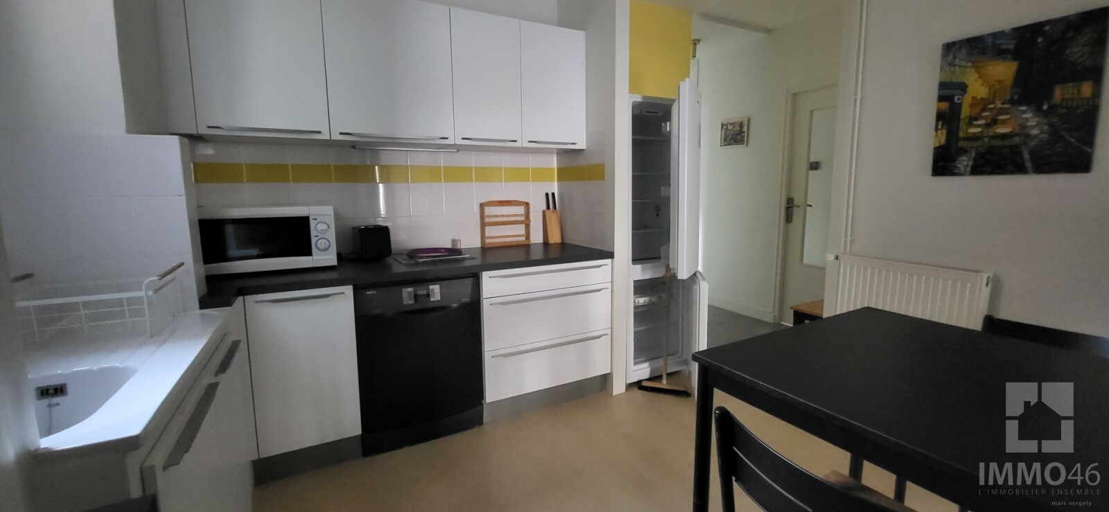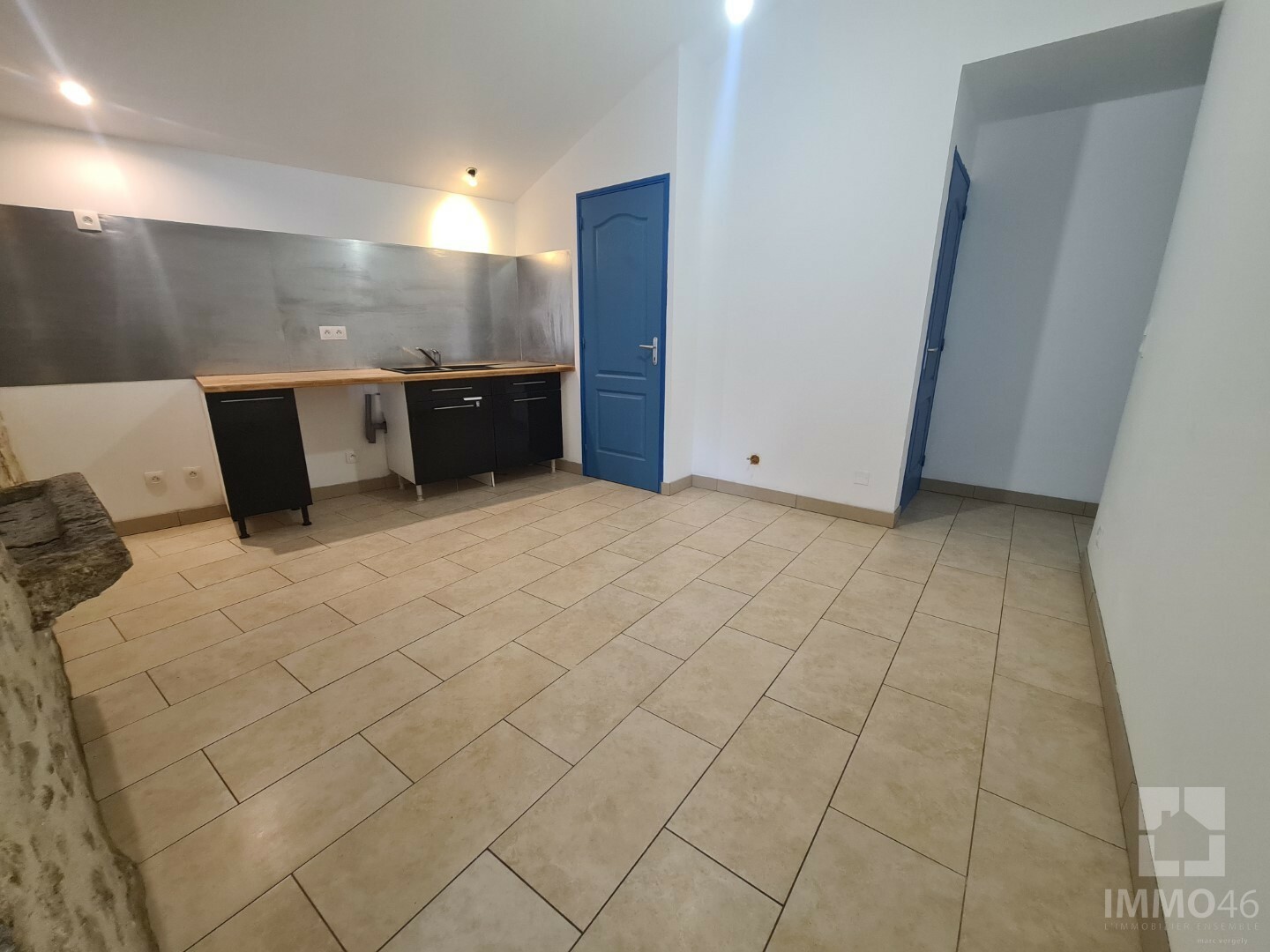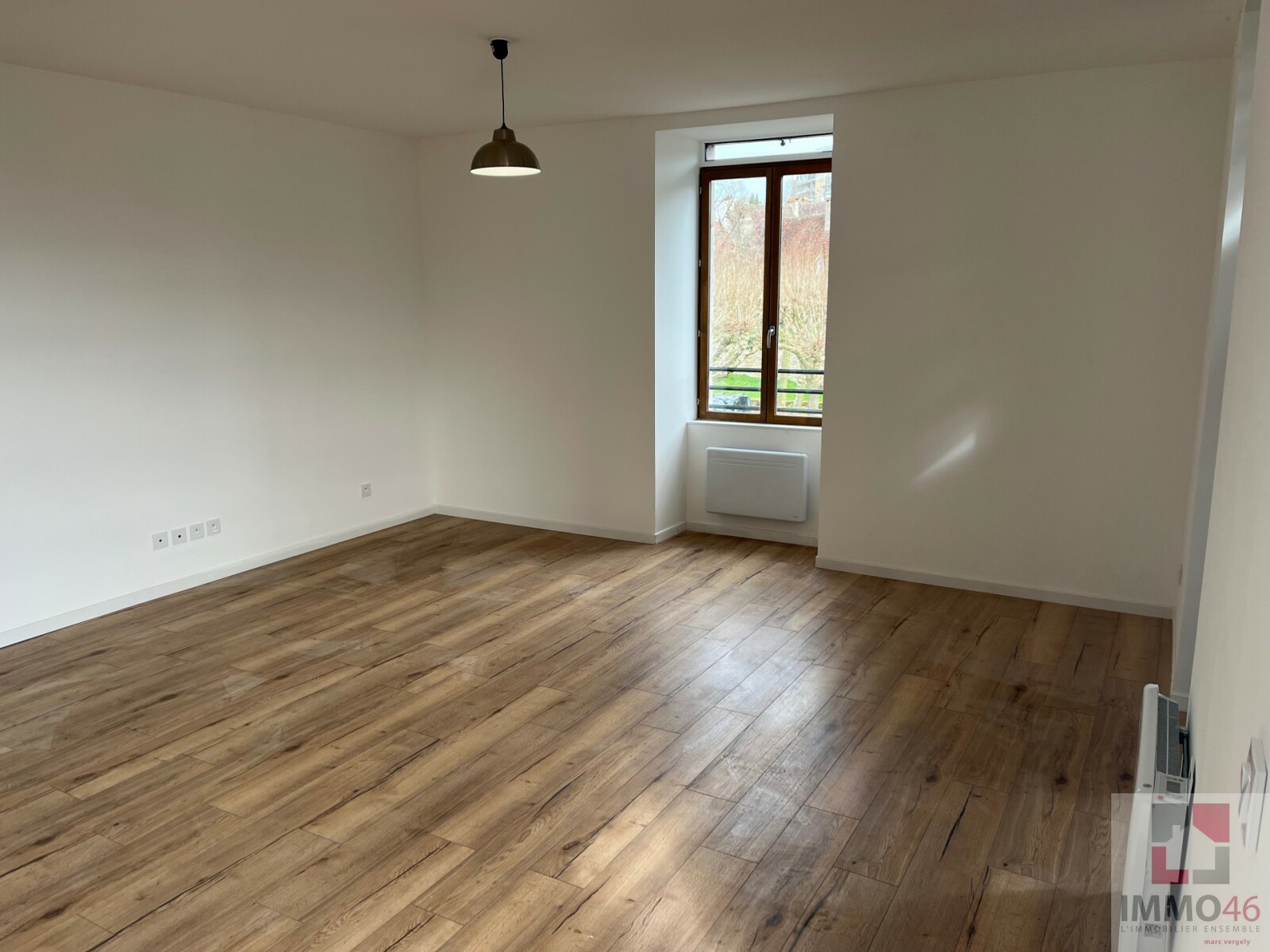 IMMO46 vous propose à la location cet appartement en rez-de-chaussée de 48m² non meublé, rénové entièrement il y a un an. <BR><BR>L'entrée donne sur la pièce de vie, cuisine équipée en suivant, un couloir donne accès au WC, salle d'eau et...