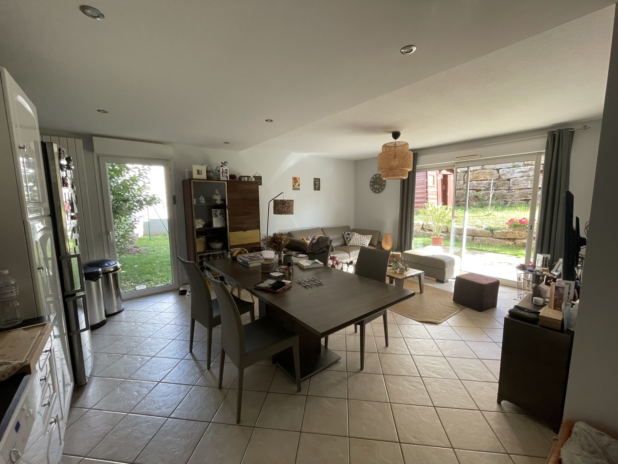 - une entrée, un séjour avec une cuisine américaine équipée d'une plaque de cuisson et d'une hotte, deux chambres...