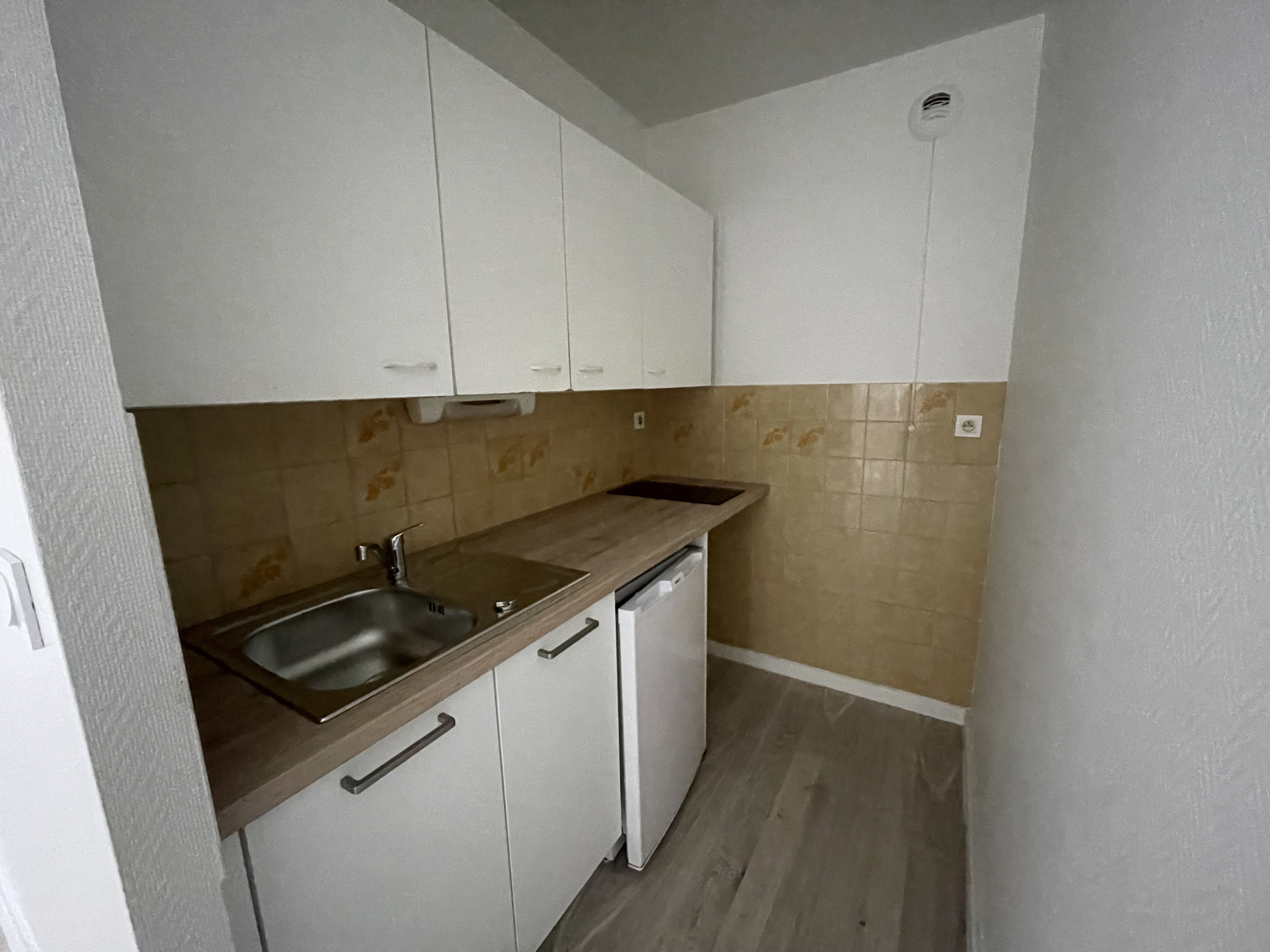- Une entrée avec placard, une pièce de vie avec cuisine (plaque électrique + frigo TOP) et une salle d'eau avec WC.