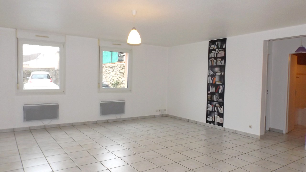 LUDRES - À louer, place Ferri, un appartement 3 pièces de 69,98m² situé au 1er étage d'un immeuble.<BR><BR>Il se compose d'une entrée avec placards, un séjour avec coin cuisine, deux chambres et une salle de bain.<BR><BR>Il di...