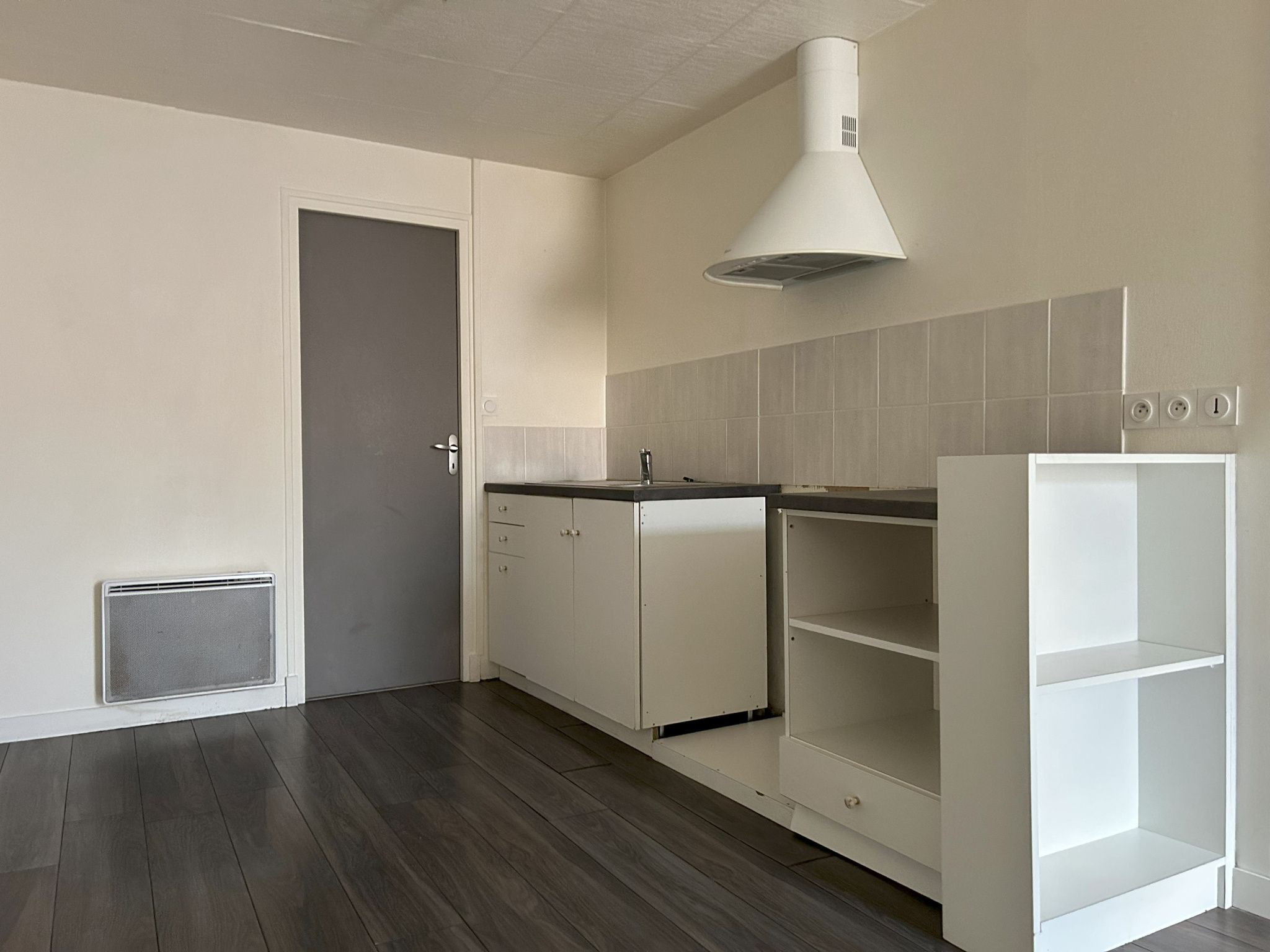 PICTAVE immo, votre agence immobilière à LUSIGNAN vous propose à la location, cet appartement de type 2 au premier étage d'un immeuble dans le centre bourg de Lusignan.Le logement est situé à proximité des commerces : supermarché, bureau de poste, tabac, ...