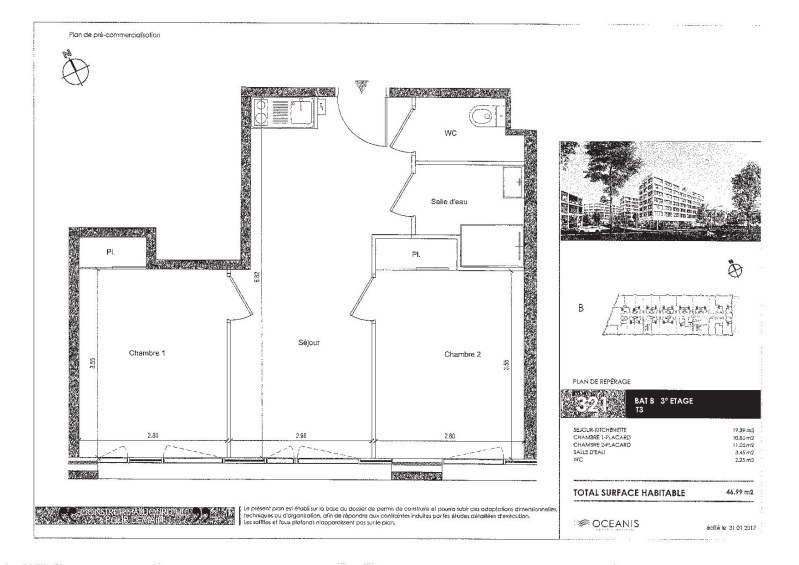T2 de 60.21 m² au 2ème étage avec ascenseur.