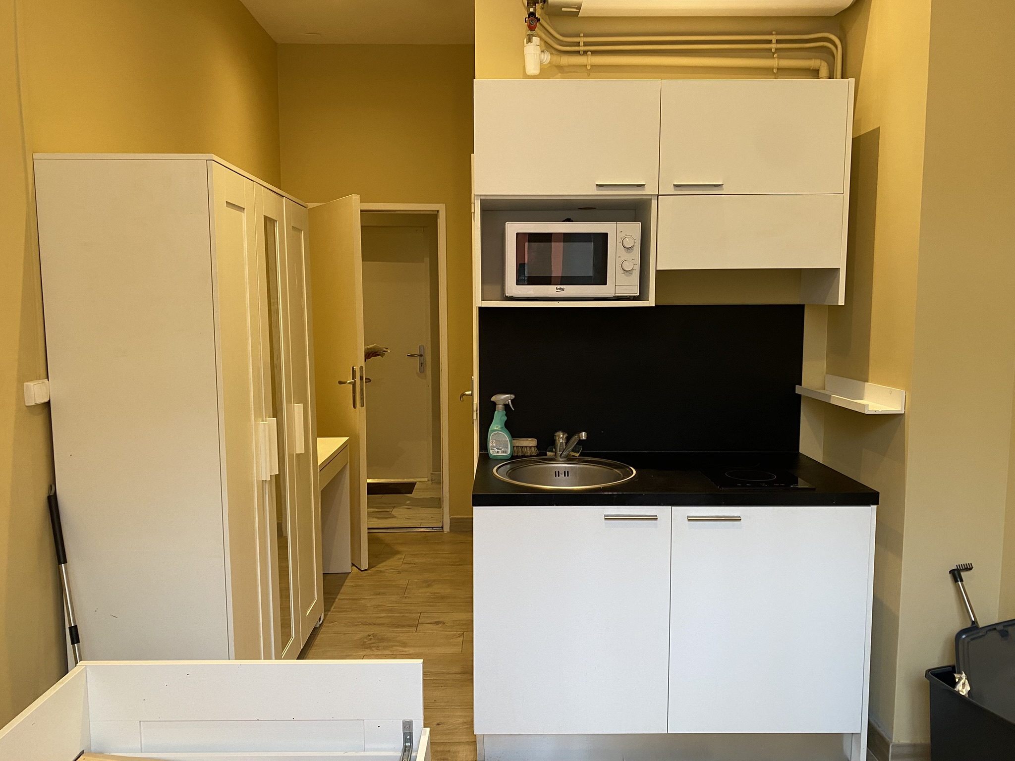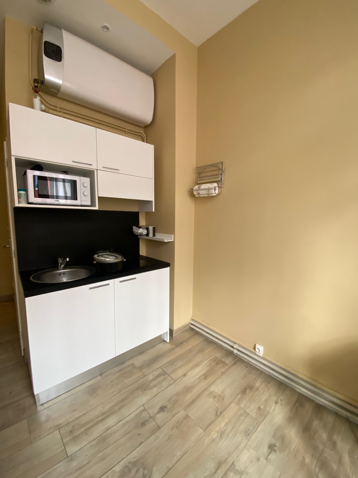 Appartement de type 1 composé d'une entrée, une pièce de vie avec coin cuisine équipée (frigo, plaque de cuisson et micro-onde),avec un coin nuit, une salle d'eau et un toilette.
