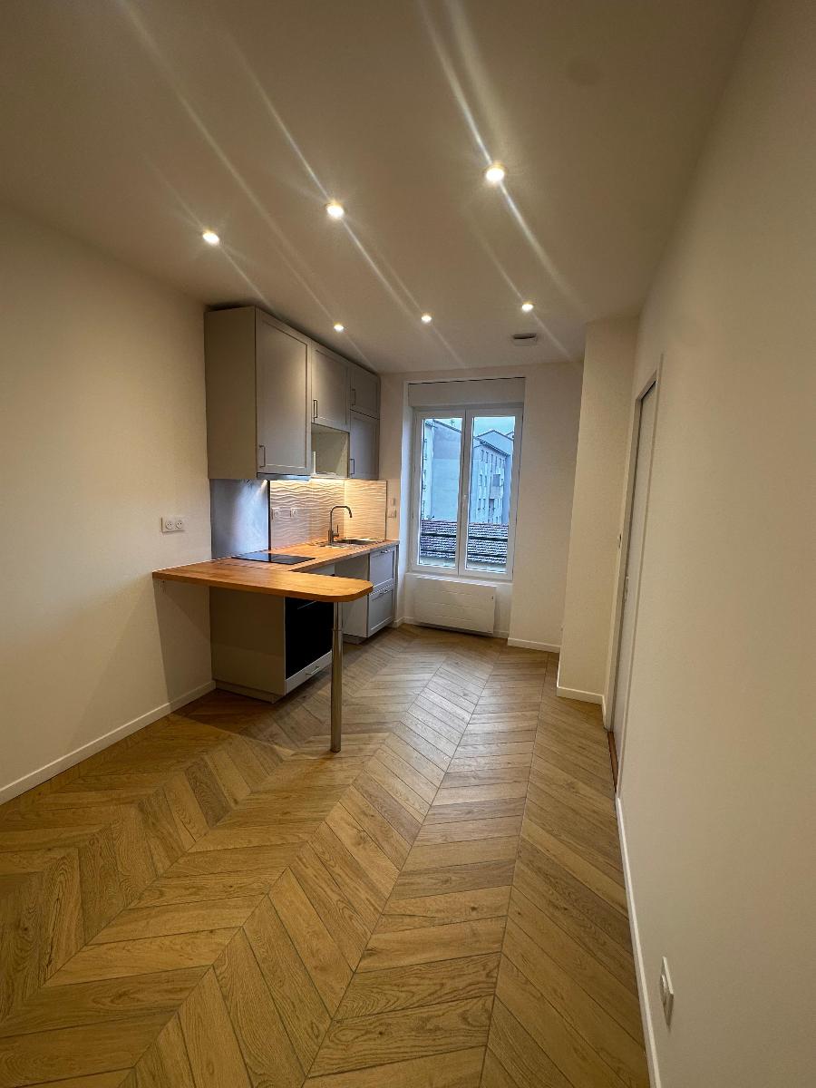 LYON 3 - APPARTEMENT T2 RENOVE - LYON 3 - 14 IMPASSE BELLOEUF. Un appartement de type 2 de 24 m² (37 m² au sol) entièrement rénové, situé au 4e étage, comprenant une entrée, un séjour avec cuisine, une chambre, W.C. Salle d'eau. Chauffage et eau chaude él...