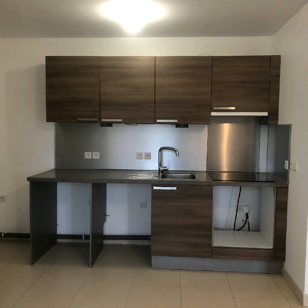 Entrée avec placard, séjour avec cuisine aménagée et semi ...