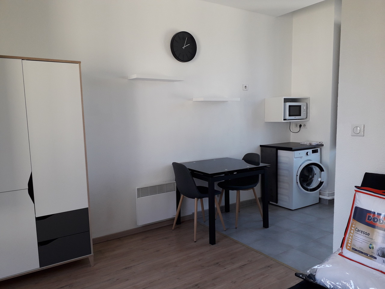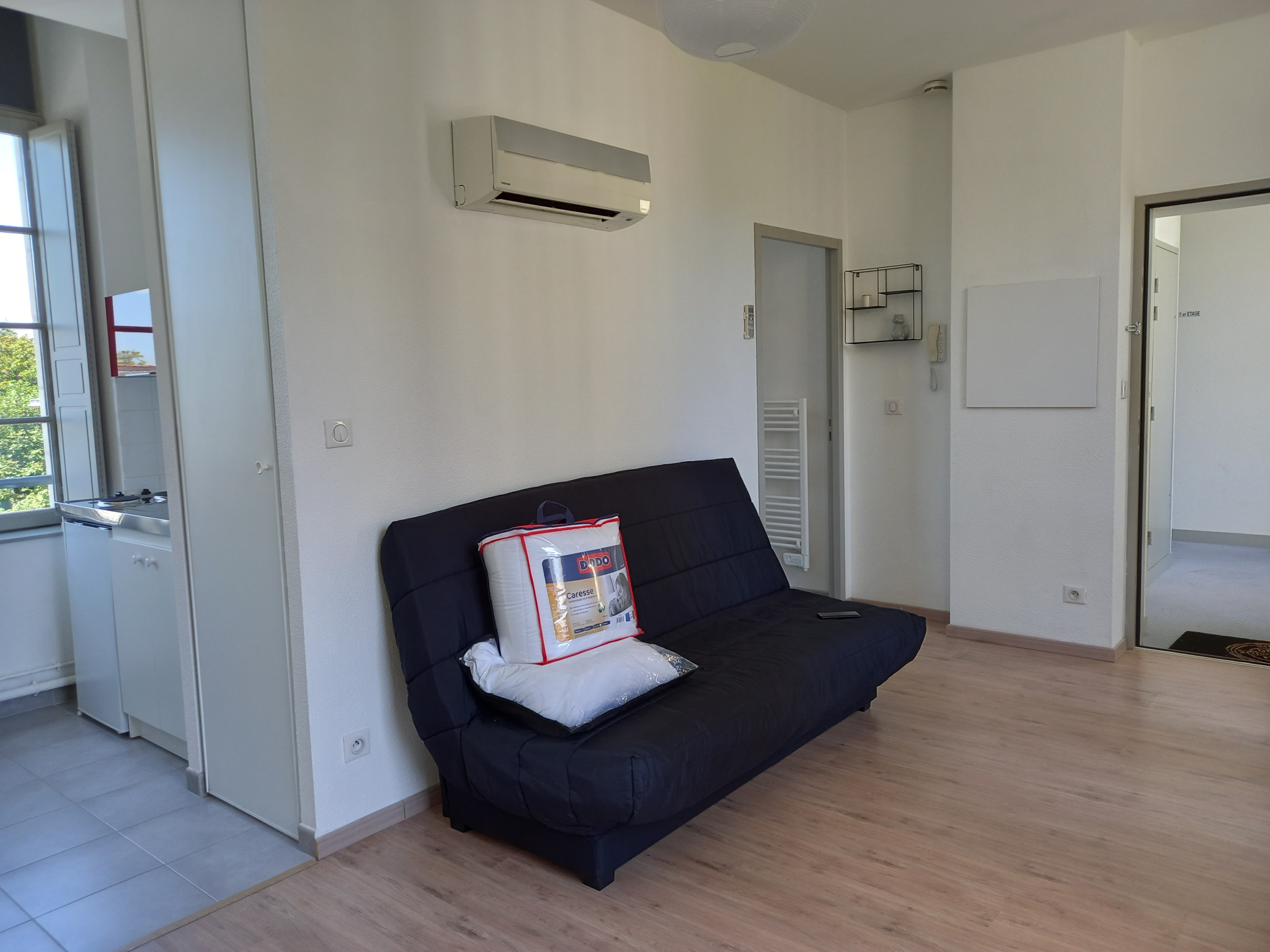 Ce studio offre une pièce principale avec coin cuisine aménagée et équipée, un coin chambre, une salle de douche avec WC. Mobilier mis à disposition.