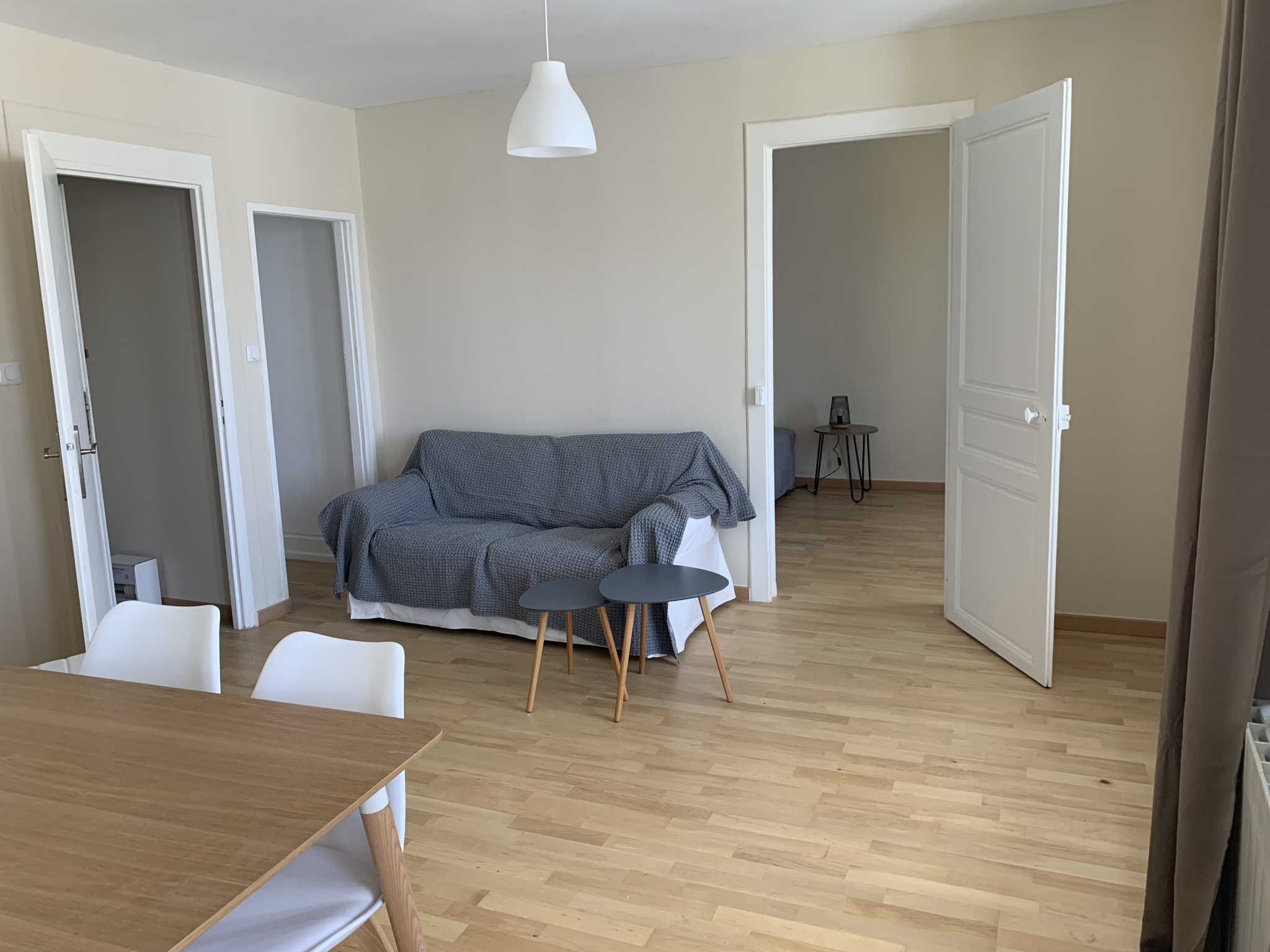 Appartement -F2- Refait à neuf Belles prestations Construction années 1900 Entrée, séjour, cuisine équipée et cellier, 1 chambre avec salle de bain attenante, wc séparés, chauffage ind. Beau et grand F2 dans petit immeuble de construction récente plein ce...