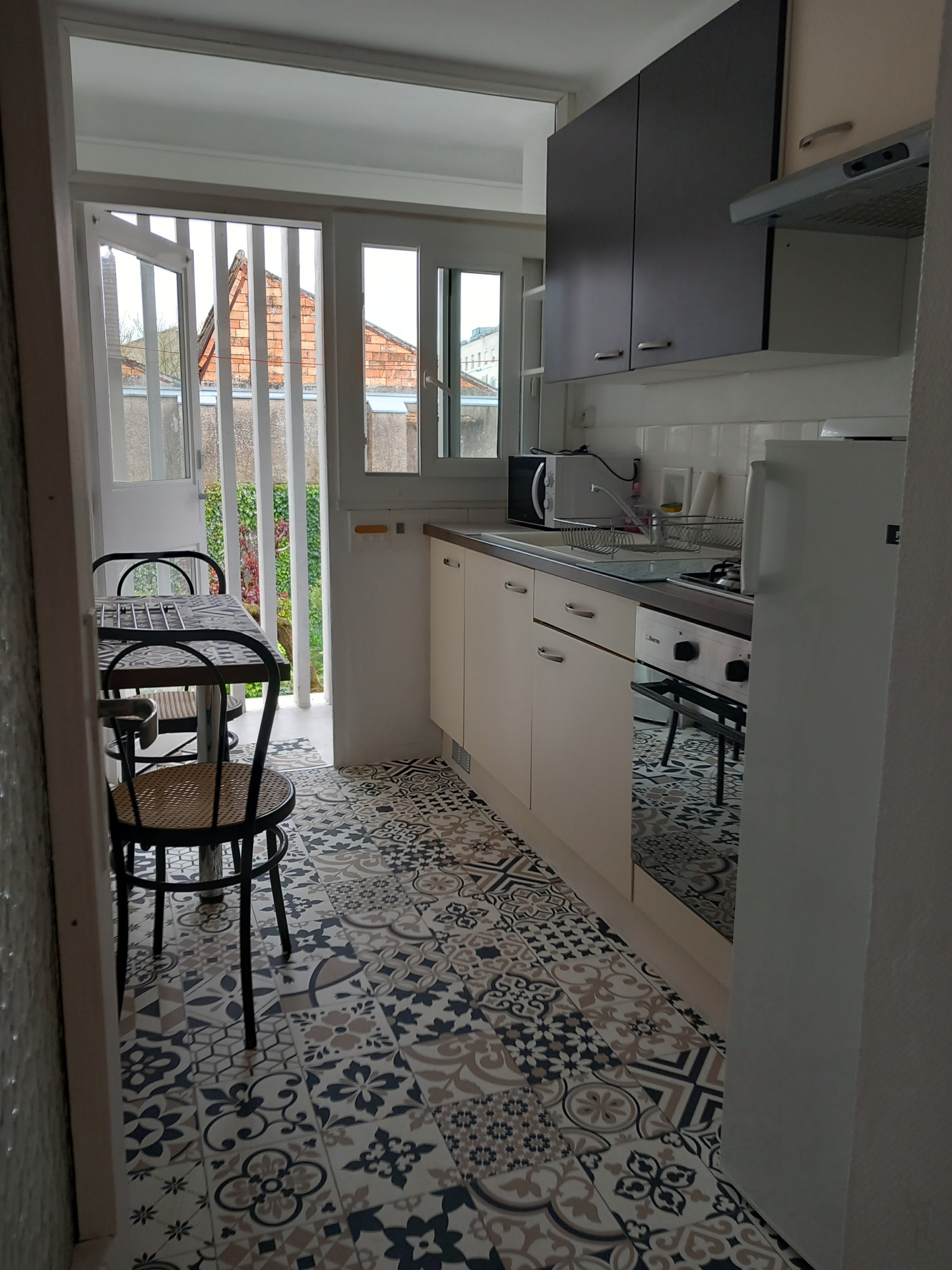 Marmande, proximité immédiate centre-ville, appartement T2 en rez-de-chaussée, comprenant : séjour avec coin cuisine, chambre, salle d'eau + wc. Cellier privatif - Cour commune - Disponible mai
