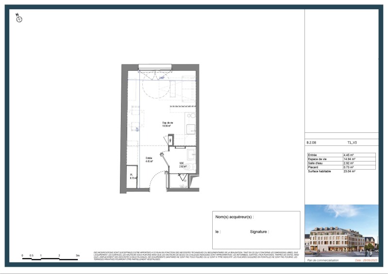 Appartement T3 au 2ème étage avec ascenseur composé :