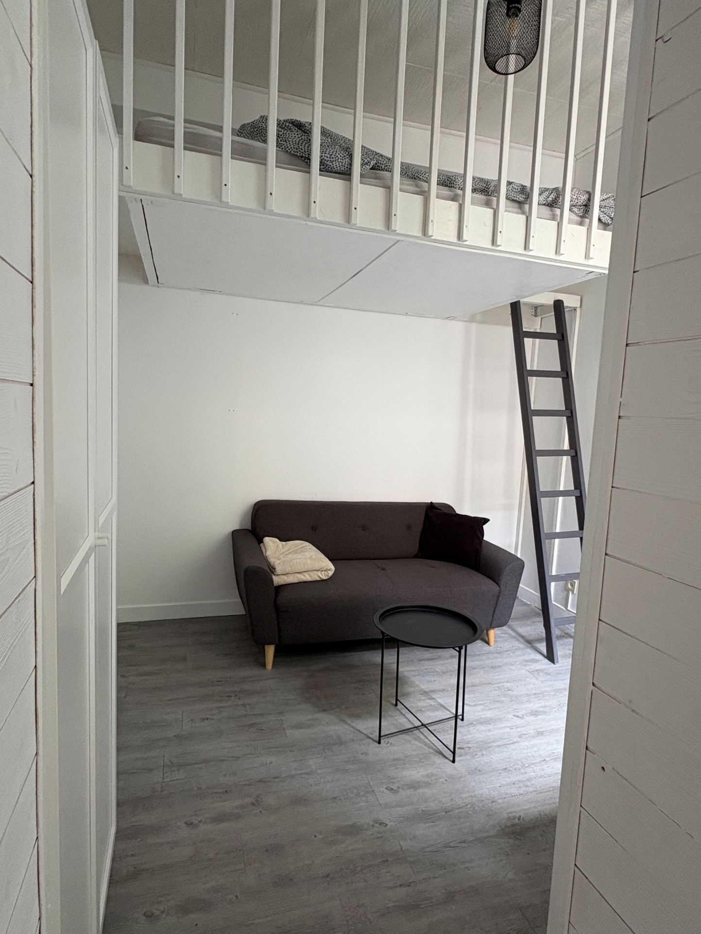 LAVAL, Quai ALBERT GOUPIL un appartement T1 meublé comprenant un coin salon avec cuisine aménagée et équipée, une chambre en mezzanine, une salle d'eau avec WC.