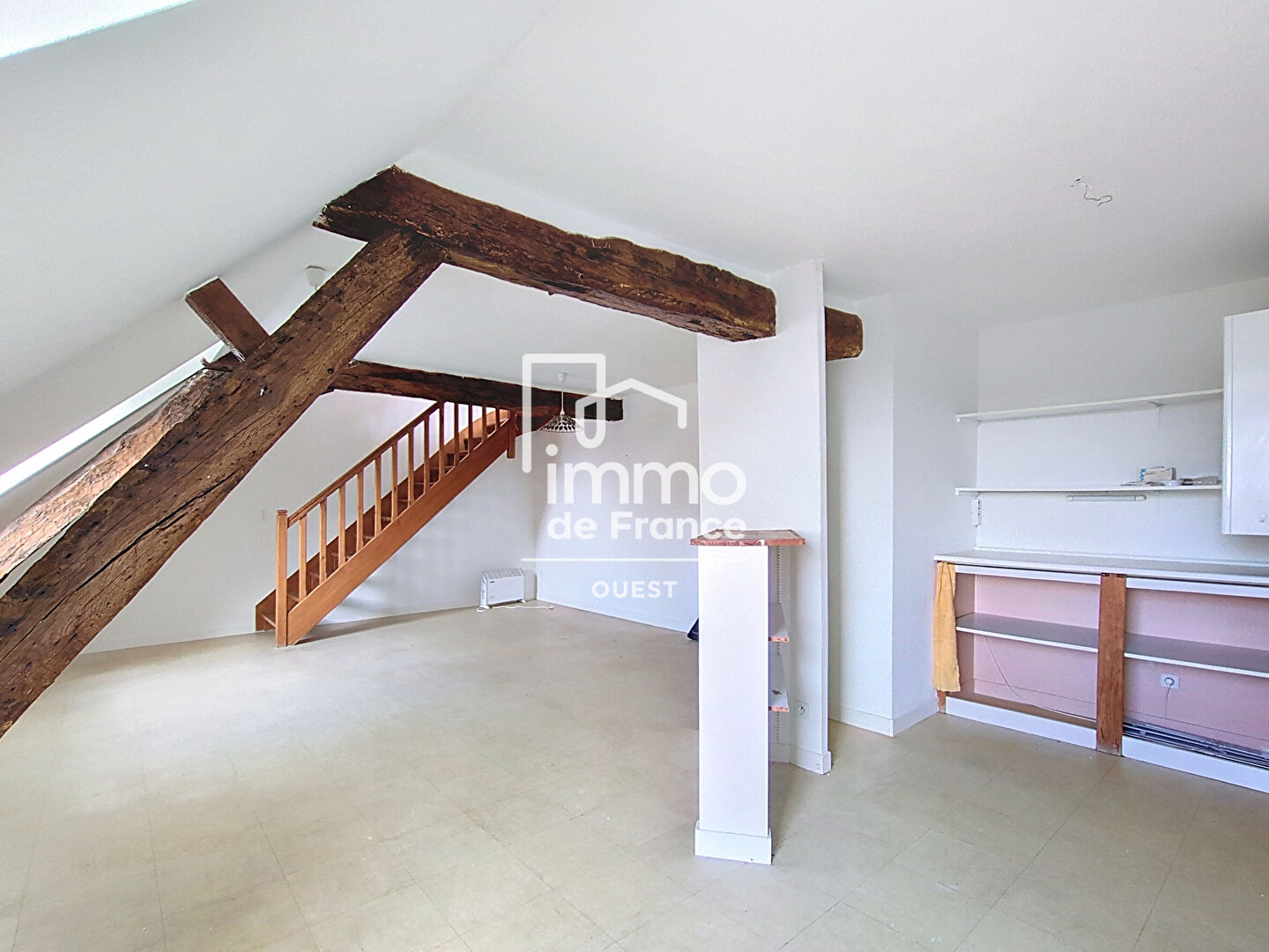 M4519 -Place Cheverus, appartement de 3 pièces en duplex au 3ème et dernier étage offrant une pièce de vie ouverte sur cuisine aménagée ; à l'étage, 2 chambres, une salle de bains.