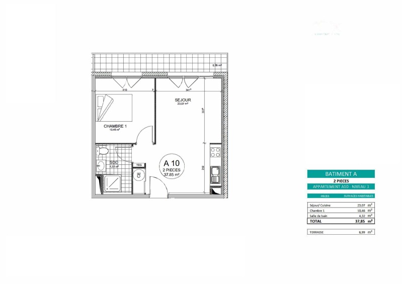 Il inclut une entrée avec placard, une cuisine aménagée et équipée donnant sur loggia, un séjour avec accès loggia, une salle de bain, une salle d'eau, une buan...