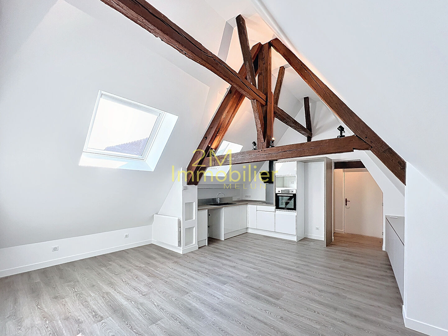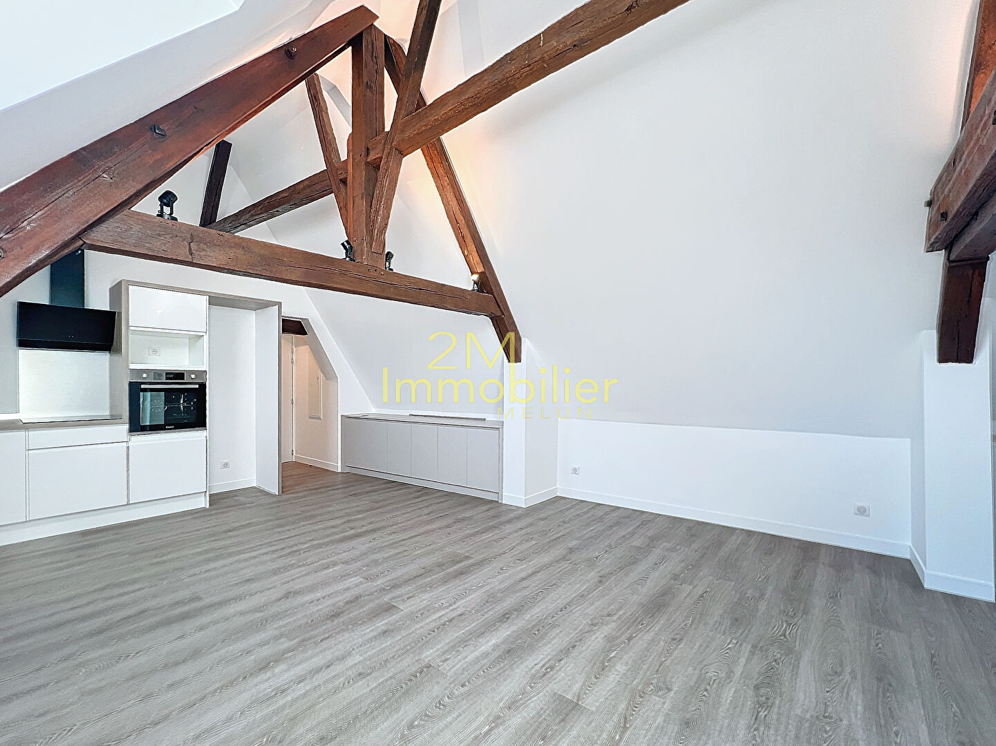 L'agence 2M Immobilier vous propose à la location cet appartement de caractère rénové, de trois pièces principales, situé au 2ème étage d'un immeuble sans ascenseur, en plein centre de Melun.