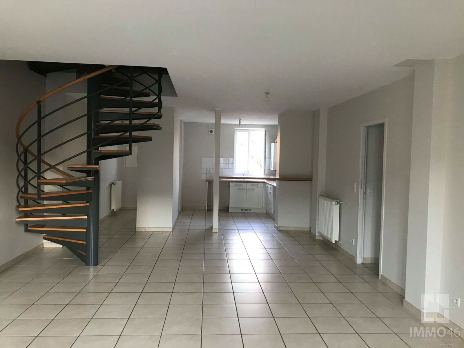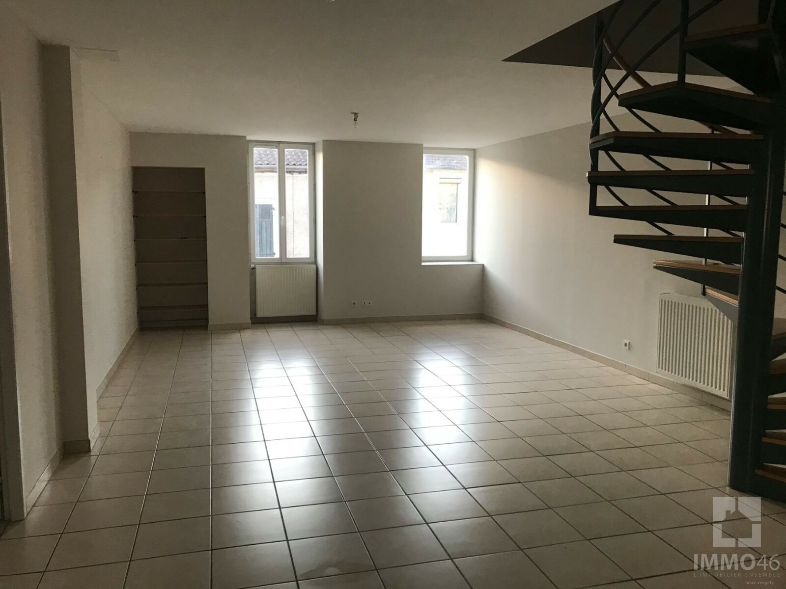 IMMO46 vous propose à la location cet appartement T5 duplex de 113m² situé dans le centre du village de MERCUES.<BR><BR>Il se compose d'une entrée, d'une cuisine aménagée et équipée ouverte sur la pièce de vie, de deux chambres avec placa...